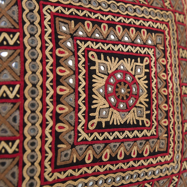 The proud stitch-heritage of the Kachchh region shows in every thread of these embroideries. Many ethnic groups are famous for their needlework: Dhebaria and Kutchi Rabari, Dhanetah Jats, Sodha Rajputs, and Mutwa. Each group has a traditional repertoire of figure and motif. These embroideries bring the richness of desert cultures into your hands — heirlooms for the future.