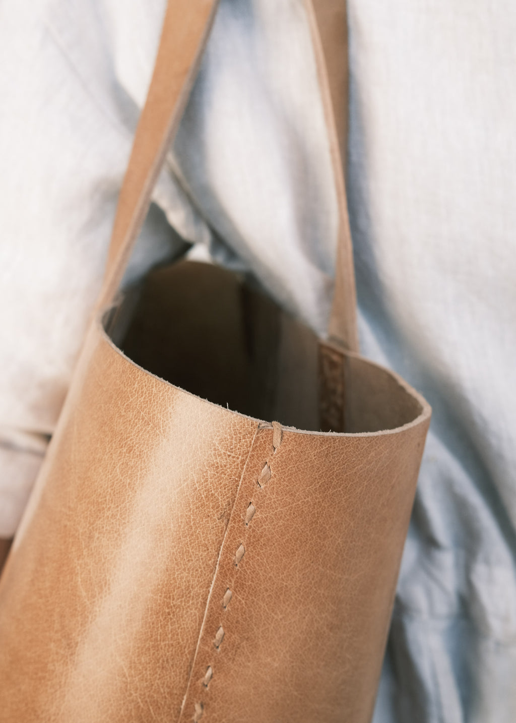 Made by the Artisan's Alliance of Jawaja - a rural cooperative located in Rajasthan, India. Vegetable-tanned leather, burnished and stitched by hand results in a piece to last a lifetime. Use adds subtlety, deepens personality and patina, and bestows a heroic character on Jawaja leatherwork.