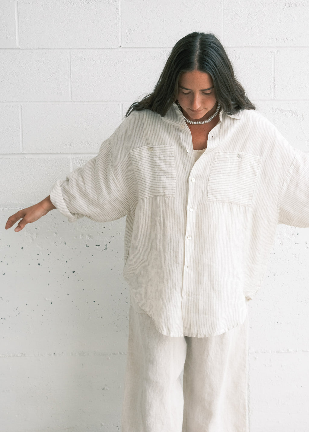 Our take on a classic button up. Beautiful detailing and construction with statement oversized sleeves, classic cuffs, breast pockets, and pleats in the back. Unisex and looks great tucked into high waisted pants. If you like the Shimoga shirt, you will love this top!