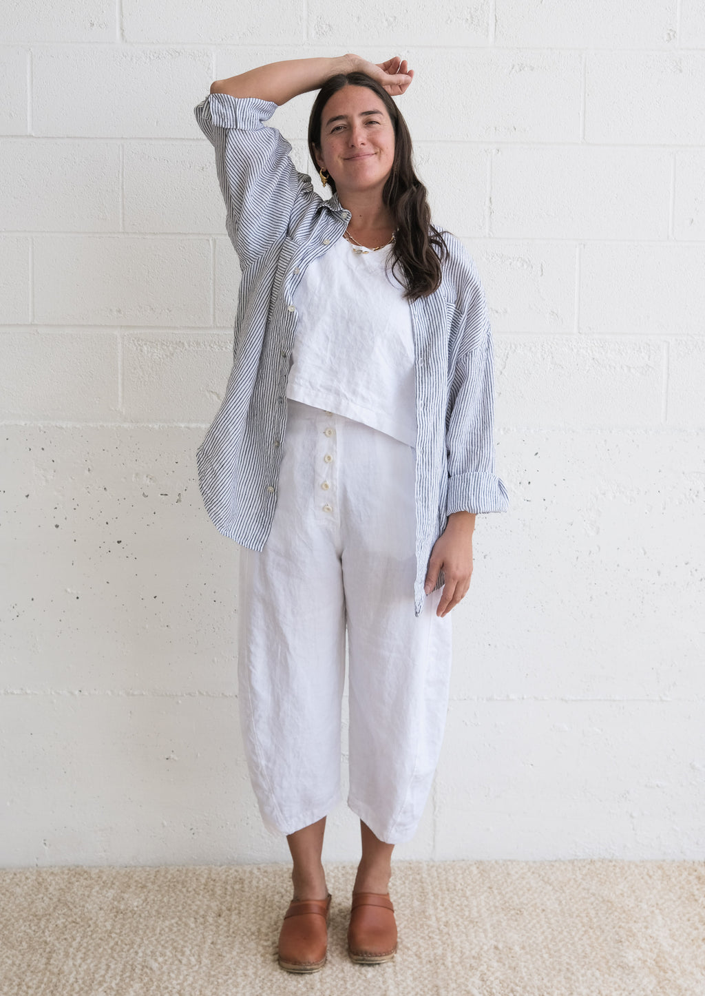 Impeccably constructed from exquisite handwoven linen cloth that is buttery to the hand and will just get better and better with age.