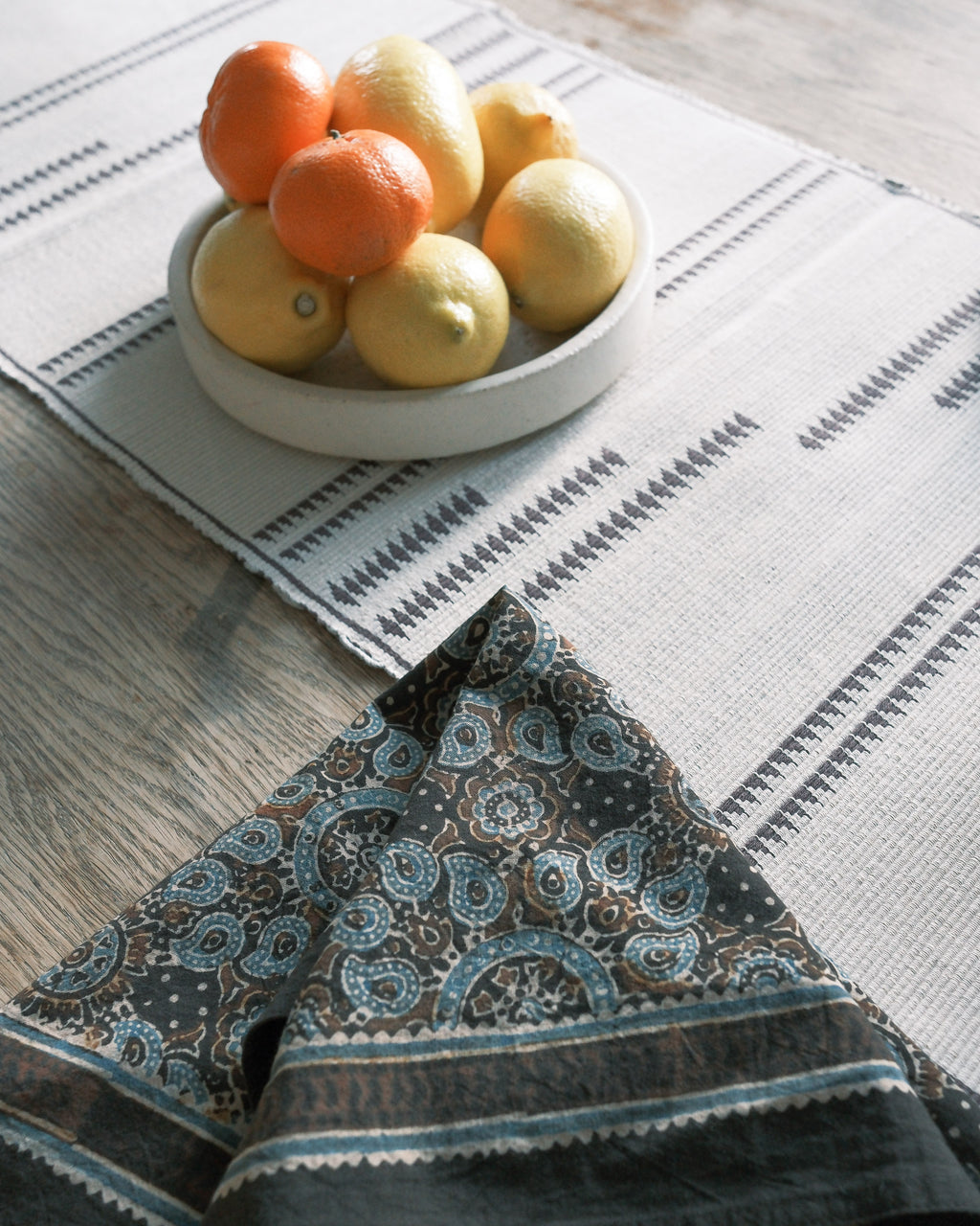 Process: Block printed by hand with natural dyes by master craftspeople in Kachchh, India.