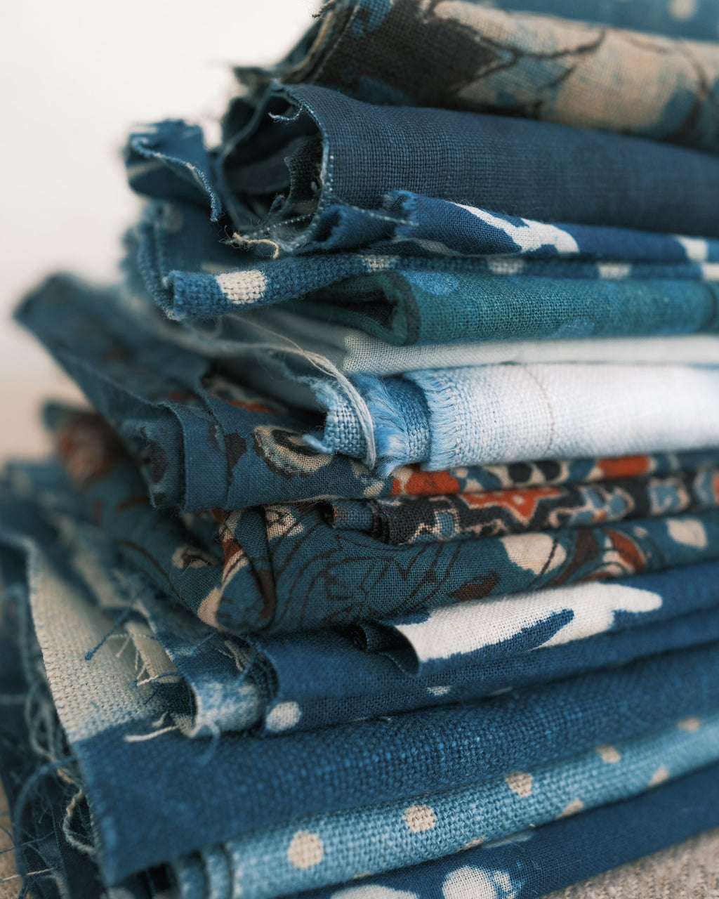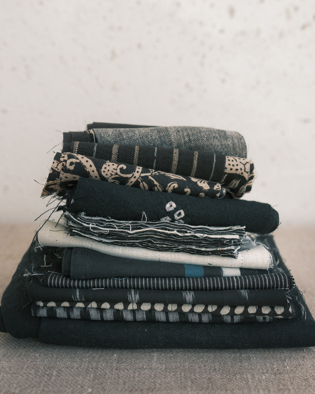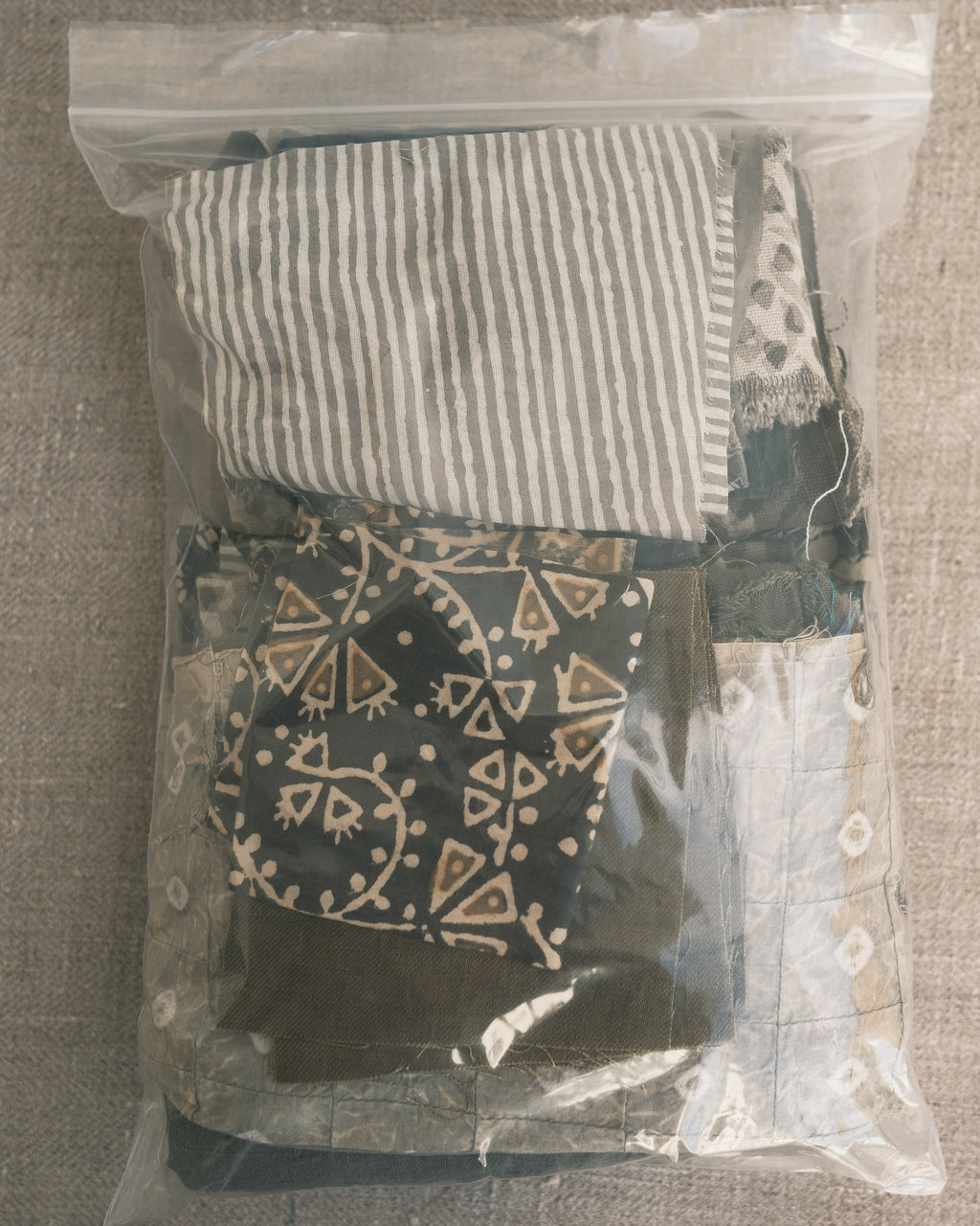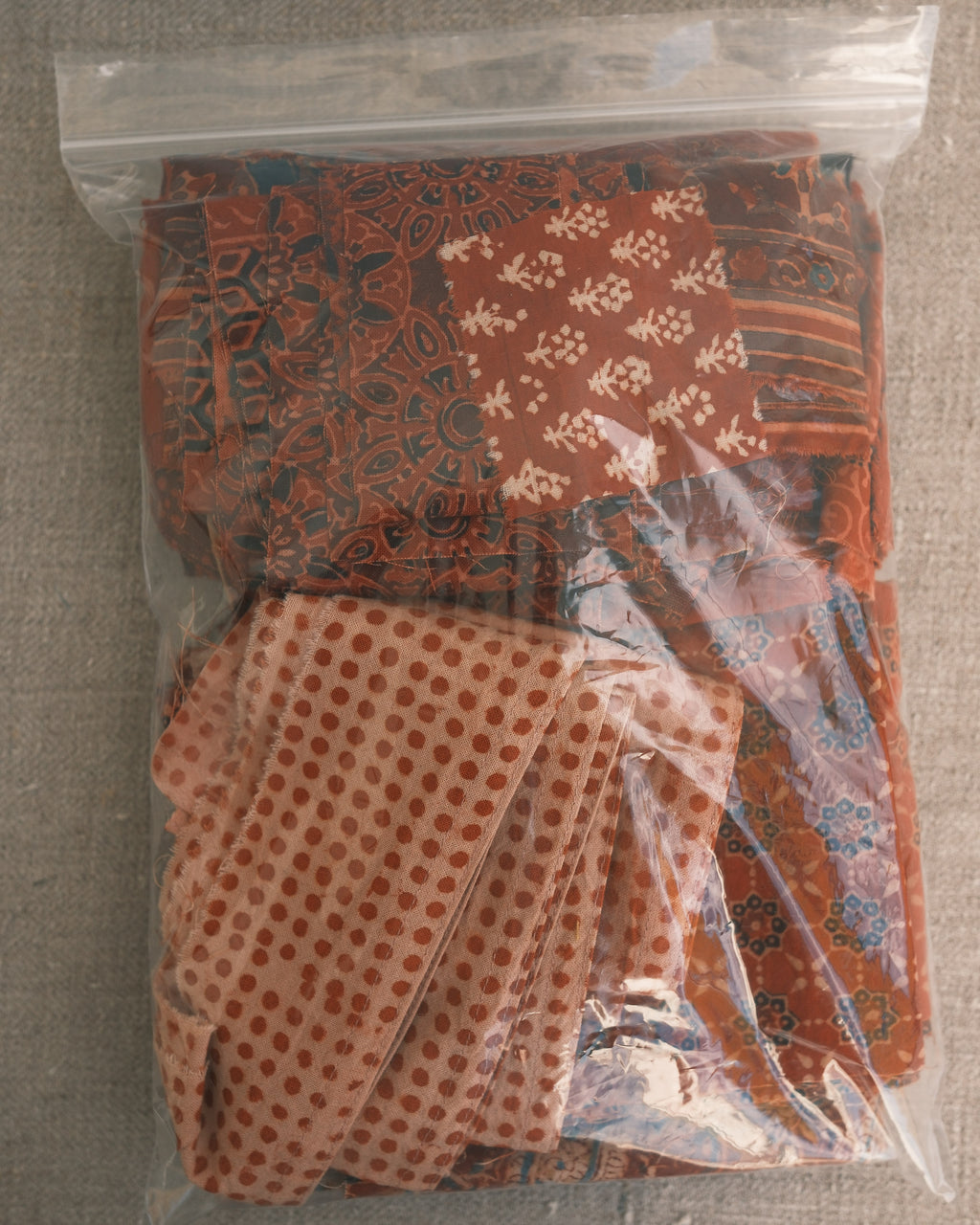 500g of offcuts from Maiwa'a clothing and bedding lines. A mixture of natural fibres which are naturally dyed, handwoven or block printed by master craftspeople in India. Each package includes various weights, colours, shapes and sizes of cloth. Great for quilting, patchwork, mending, and appliqué.