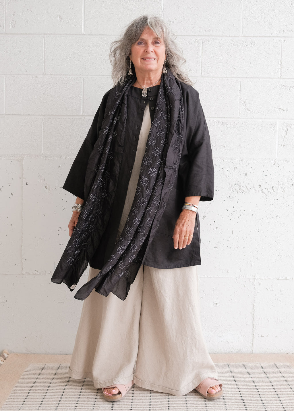 Process: Hand tied and dyed in Kutch, India by master artisans.