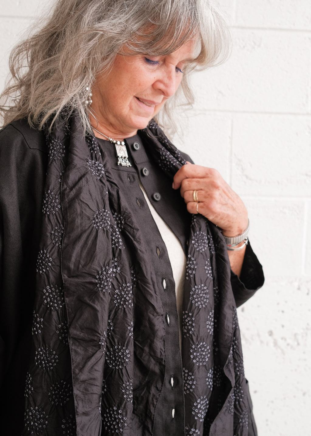The name “Bandhani” derives from the Sanskrit term meaning “to tie.” Tied resist is a traditional technique that has been practiced in India for centuries.