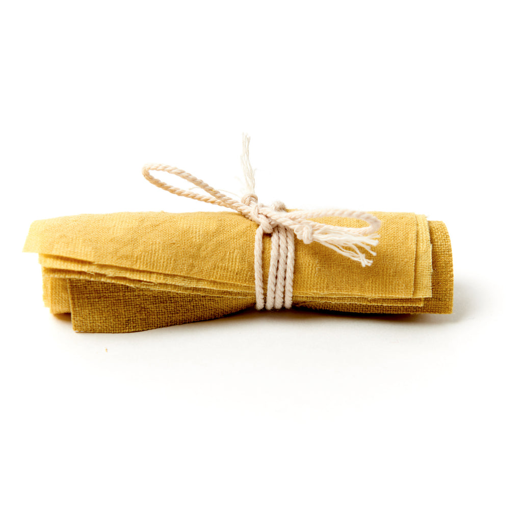 Onion Skins are a nice introduction to natural dyes for novices, children, and those who delight in colour from kitchen waste. Red onions give shades of clear maroon-brown on protein fibres and lighter equivalents on cellulose. To obtain satisfying colours from onions skins use at 20% WOF. Simmer for 1 hour, remove the skins and add your mordanted cloth. For a more thorough extraction simmer for an hour then let stand overnight before dyeing. Onions skins have medium fastness.