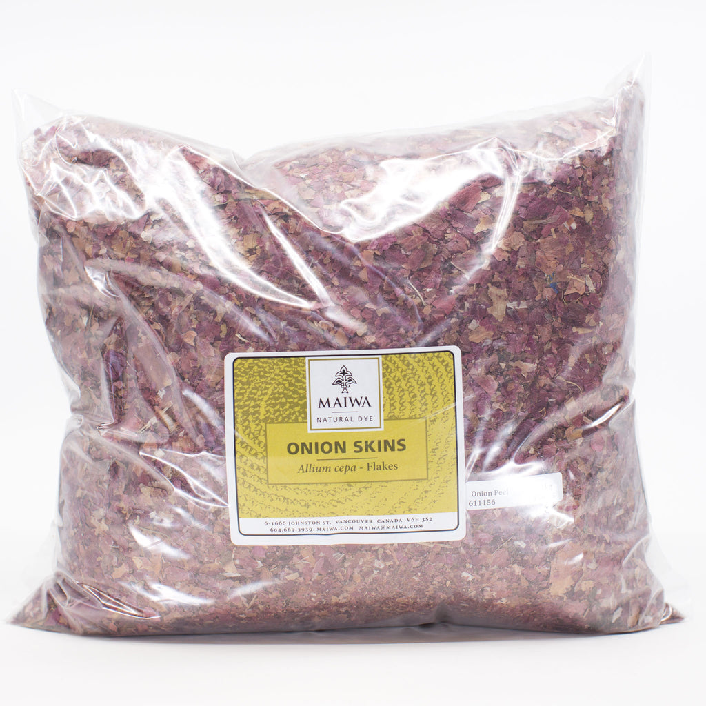 Onion Skins are a nice introduction to natural dyes for novices, children, and those who delight in colour from kitchen waste. Red onions give shades of clear maroon-brown on protein fibres and lighter equivalents on cellulose. To obtain satisfying colours from onions skins use at 20% WOF. Simmer for 1 hour, remove the skins and add your mordanted cloth. For a more thorough extraction simmer for an hour then let stand overnight before dyeing. Onions skins have medium fastness.