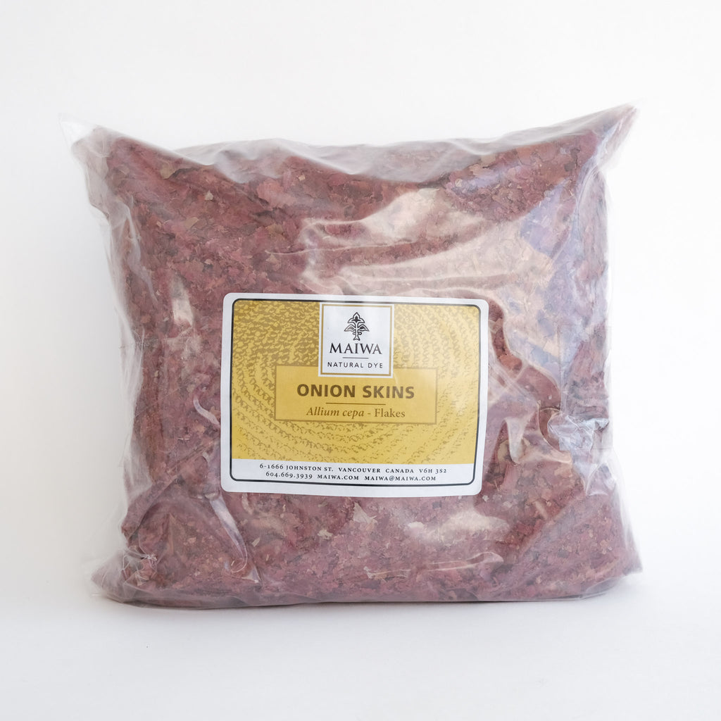 Onion Skins are a nice introduction to natural dyes for novices, children, and those who delight in colour from kitchen waste. Red onions give shades of clear maroon-brown on protein fibres and lighter equivalents on cellulose. To obtain satisfying colours from onions skins use at 20% WOF. Simmer for 1 hour, remove the skins and add your mordanted cloth. For a more thorough extraction simmer for an hour then let stand overnight before dyeing. Onions skins have medium fastness.