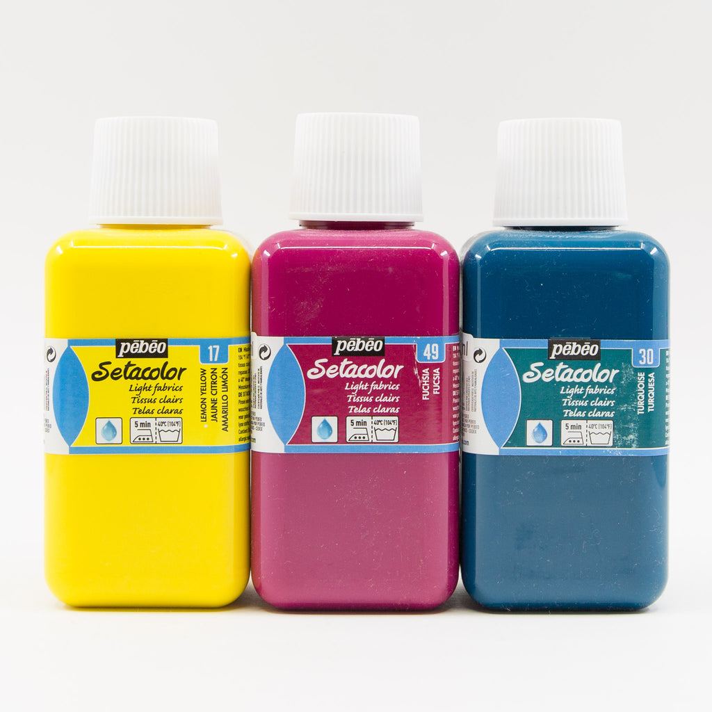 Set of 3 - 250ml Pebeo Setacolor Transparent - Bright Primary Palette