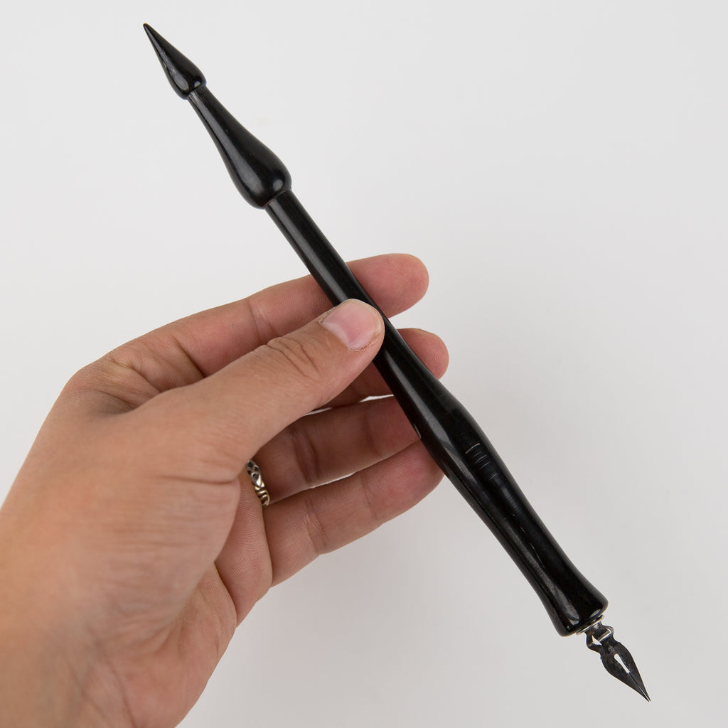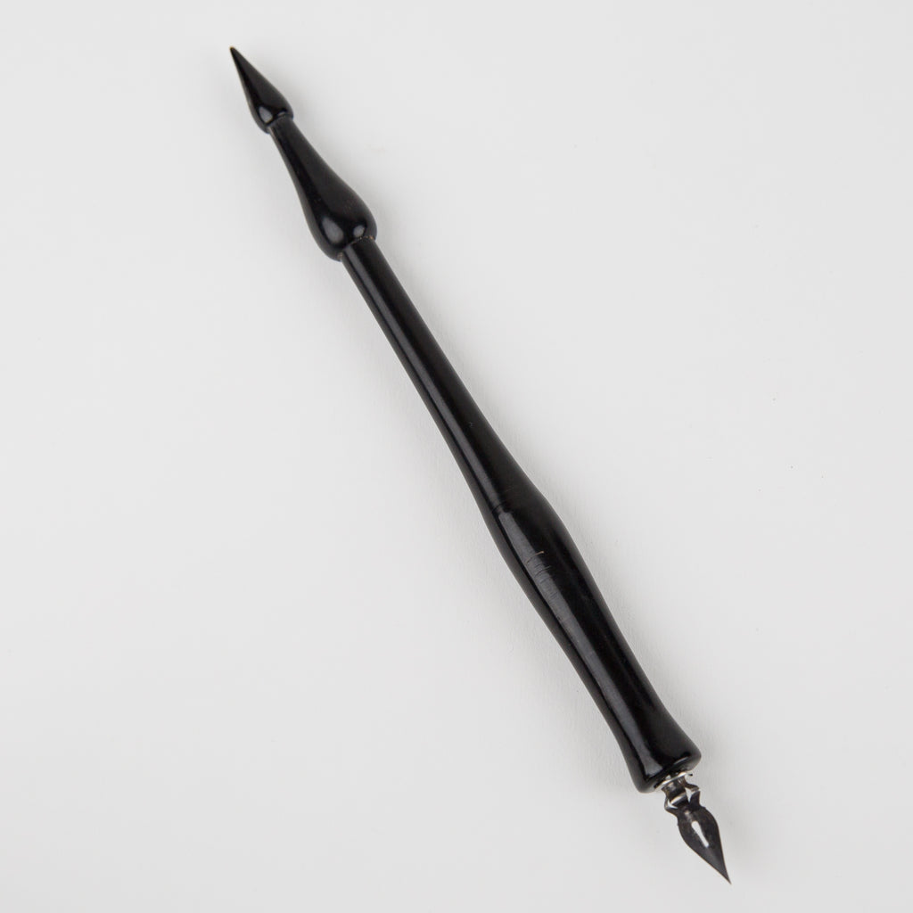 Horn dip pen holder, hand made in India, set with a metal ferrule - holds all of the nibs sold at Maiwa. Suitable for pointed pen work, writing, calligraphy, or drawing. Nibs sold separately.