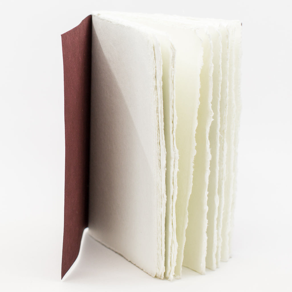These special journals are hand made in Sanganer India, the pages are made from cotton rag and thick enough to use water colour paints and indian ink. The jagged edges of the paper give the feel of the traditional process of paper making. The large size is approximately 6" x 9" (15cm x 23cm).