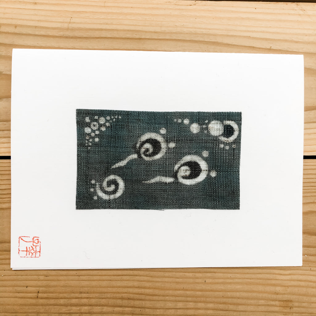 This art card has been created using a centuries-old Japanese stencil-dyeing technique known as 'Katazome' which has traditionally been used to create the intricate patterns found on kimonos. Each design is an original art piece, inspired by the flora and fauna of both Yuki's native Japan, and her current home on the Sunshine Coast of British Columbia, Canada.