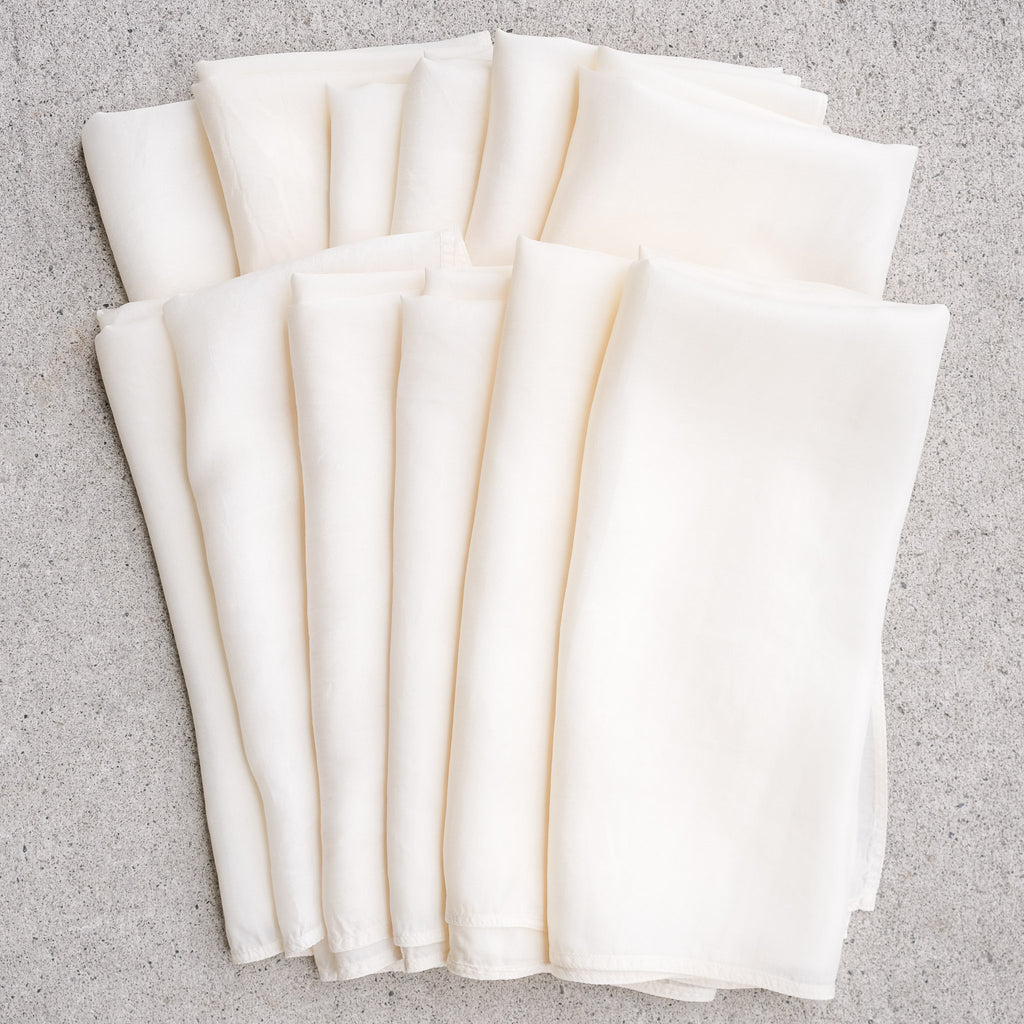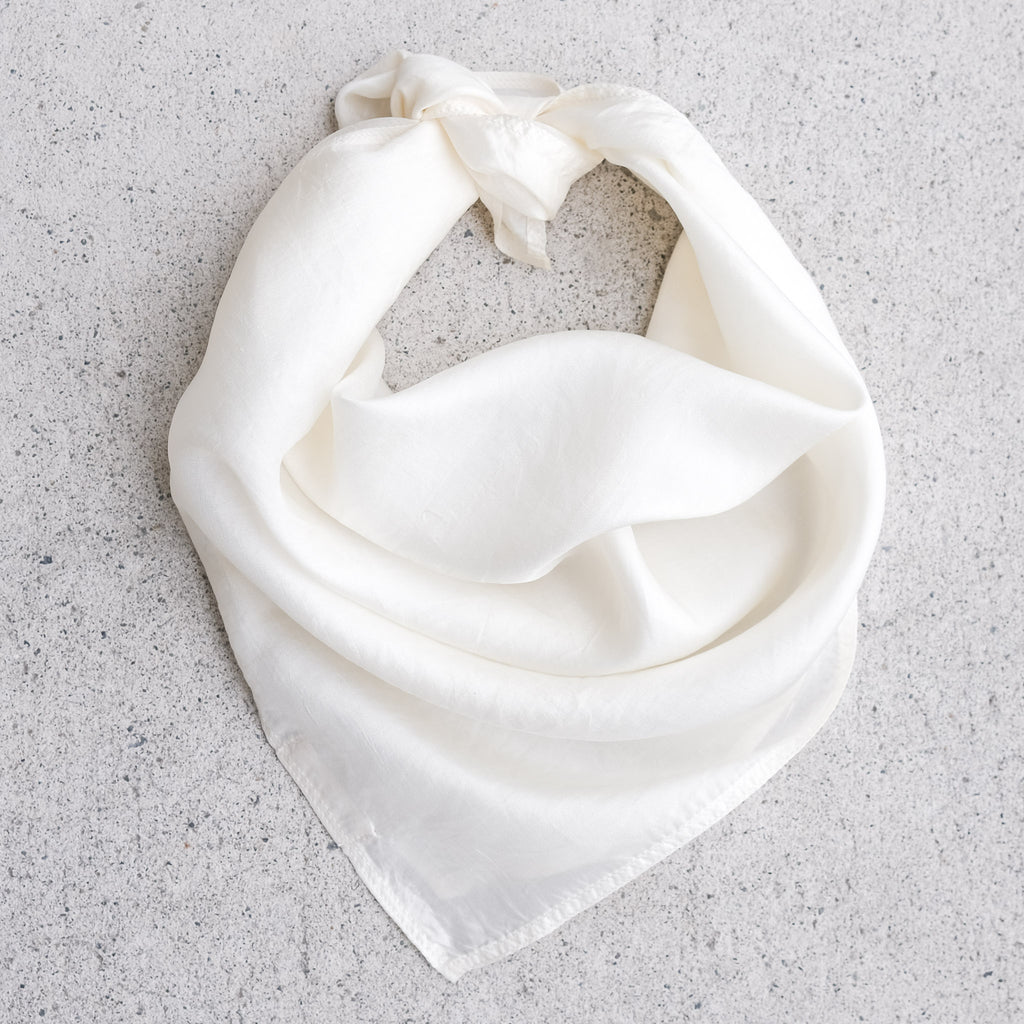 A wholesale bundle of 12 handwoven mulberry silk bandanas, great for dyeing and surface design projects. The hems are sewn with cotton thread making them optimal for indigo & natural dyes.