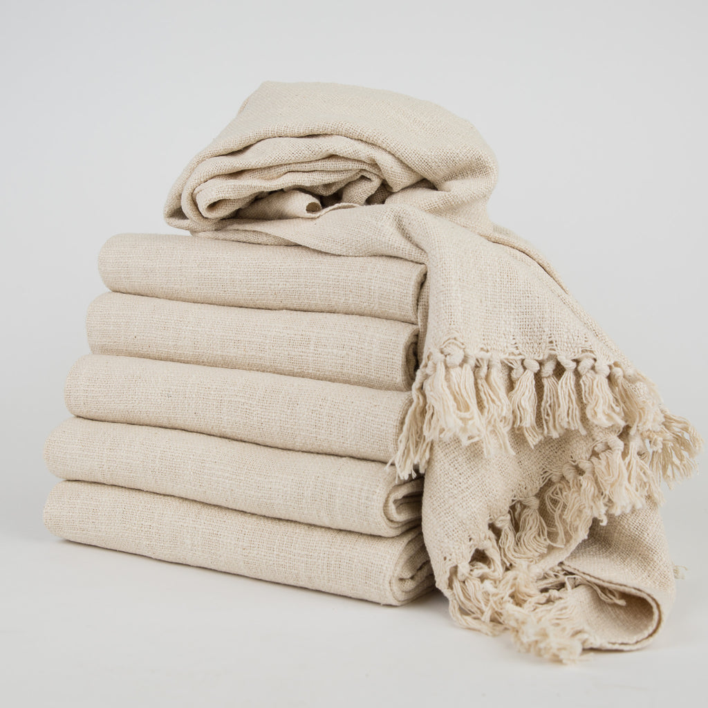 Cotton Throw - Handwoven - Natural Unbleached Cotton (6 pack)