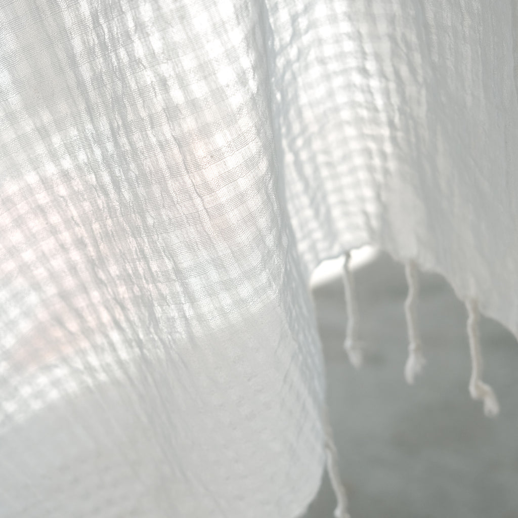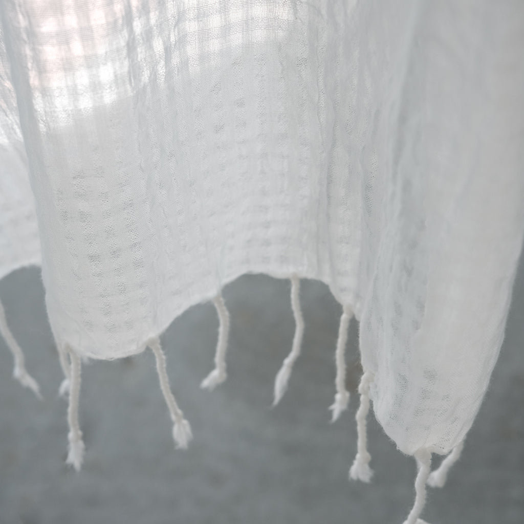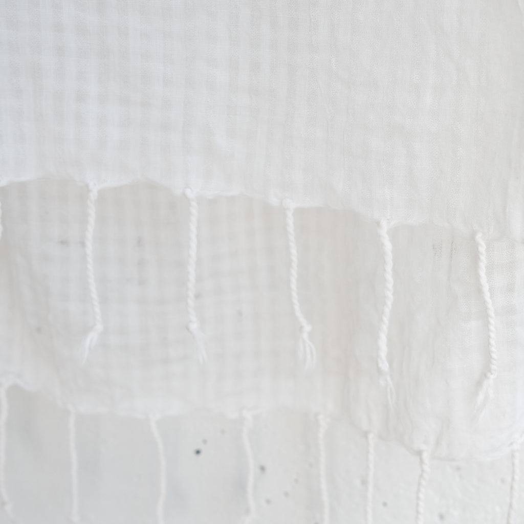 This soft organic cotton scarf with tassels is perfect for a creative project such as dyeing, printing and surface design. We love adding colour with Maiwa's natural dyes & natural indigo on these scarves. The possibilities are endless.