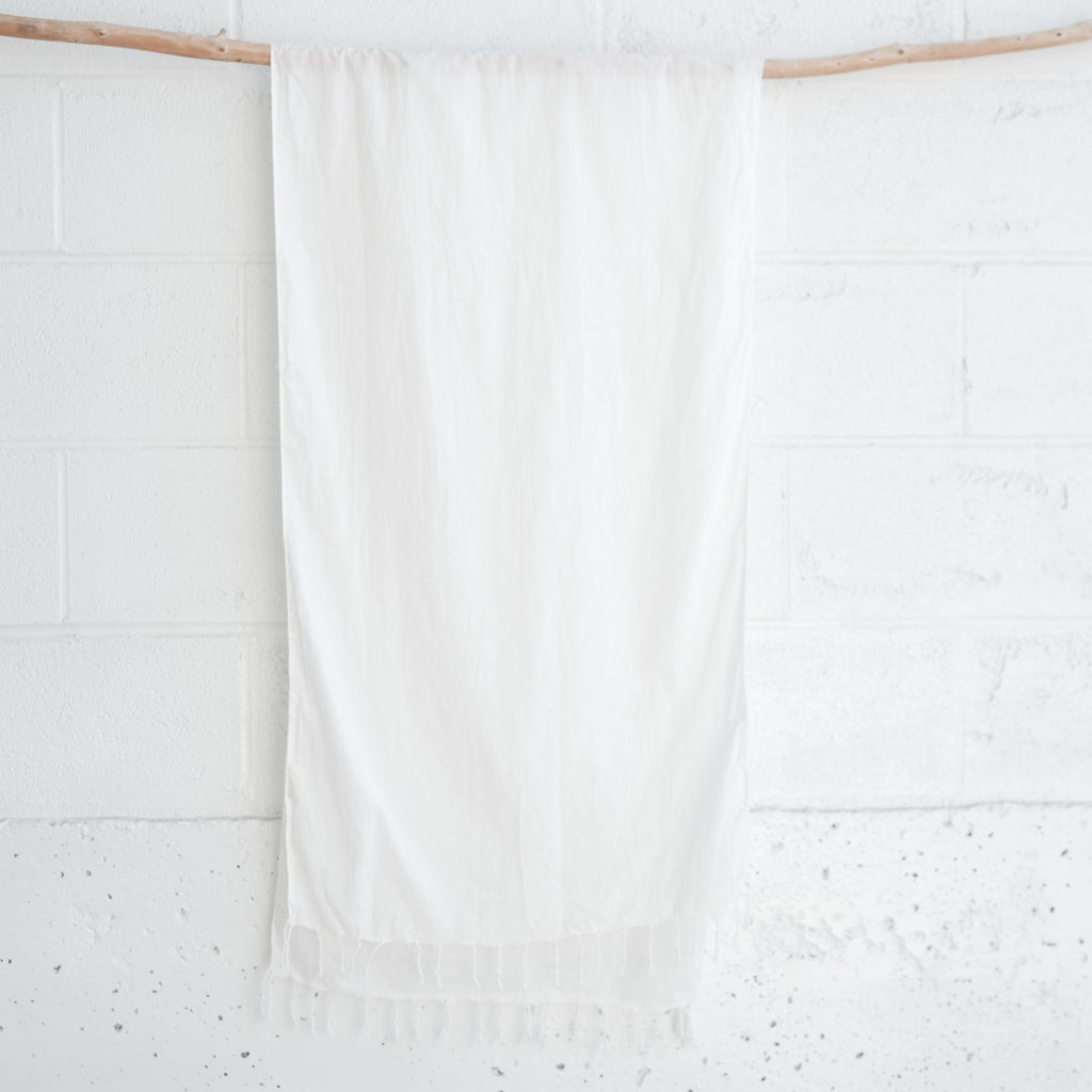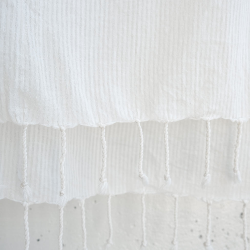 This soft organic cotton scarf with tassels is perfect for a creative textile arts project such as dyeing, printing and surface design. We love adding colour with Maiwa's natural dyes & natural indigo on these scarves. The possibilities are endless.