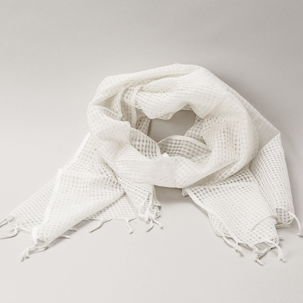 Scarf - Silk & Cotton Handwoven - Grid Design