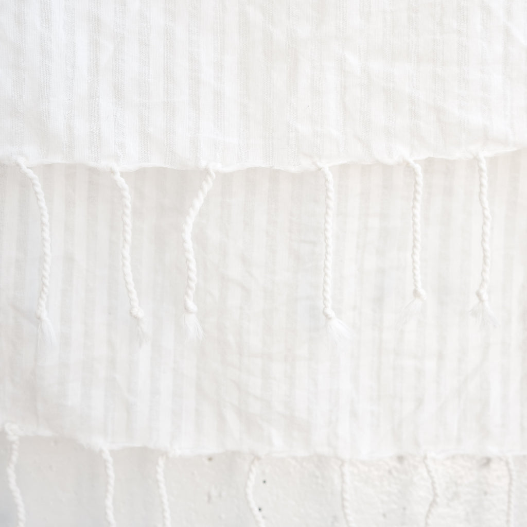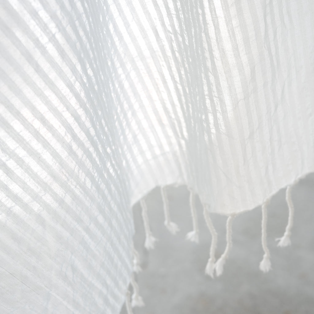 This soft organic cotton scarf with tassels is perfect for a creative project such as dyeing, printing and surface design. We love adding colour with Maiwa's natural dyes & natural indigo on these scarves. The possibilities are endless.
