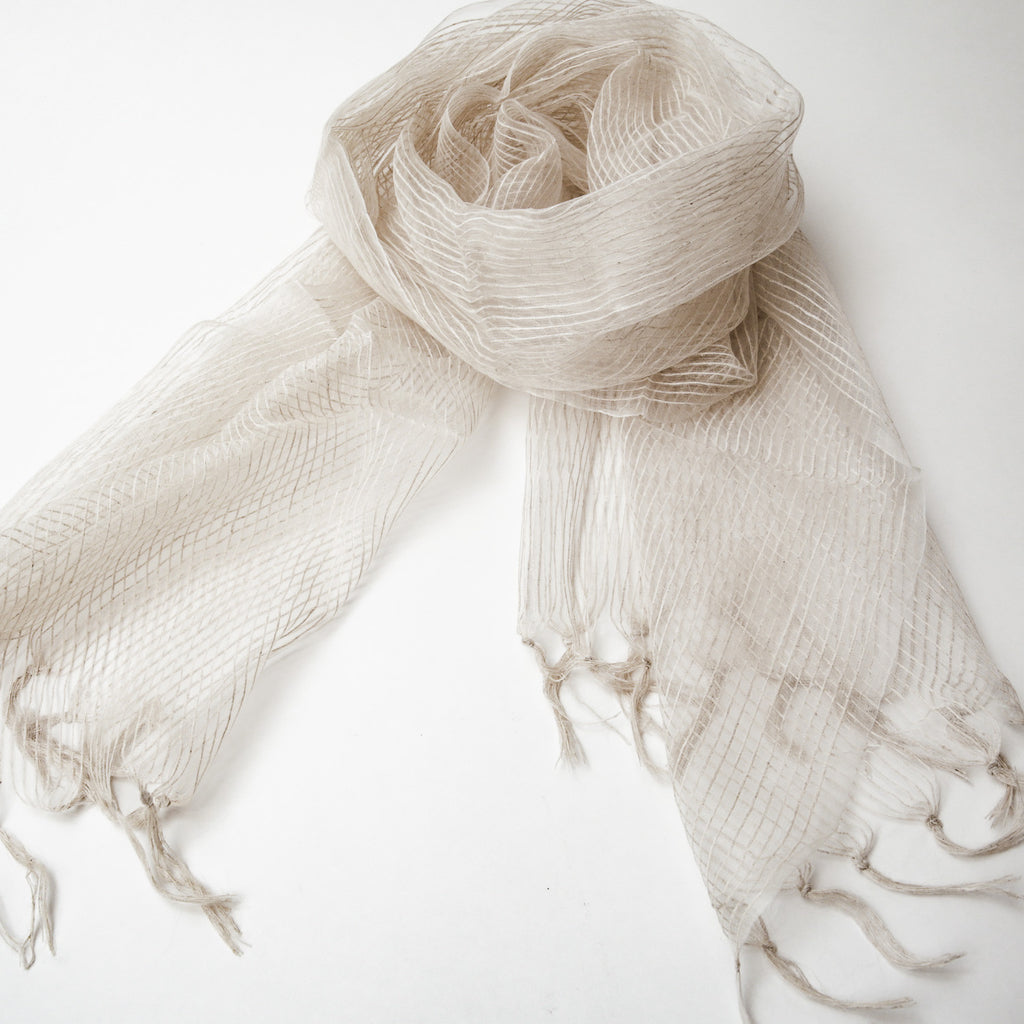 Great for dyers and nuno felters! This 100% silk scarf is handwoven by village artisans in partnership with Maiwa.