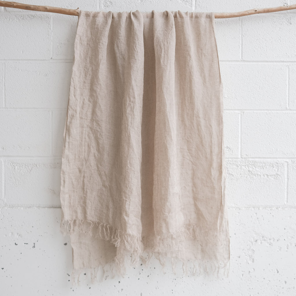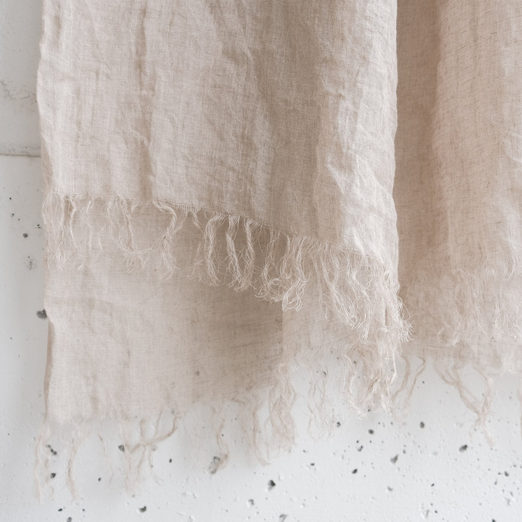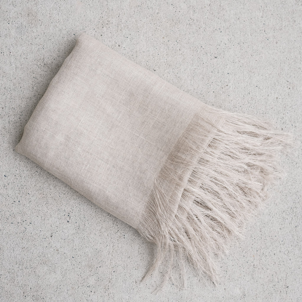 Shawl - Linen Handwoven with Long Fringe - Natural