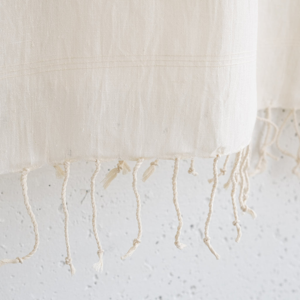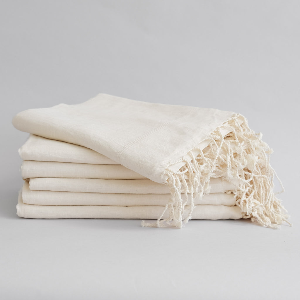 Pack of 6. These handwoven shawls are made with a matka silk warp and linen weft, giving them a soft glow and a lovely warmth. Finished with twisted tassels along the edge.
