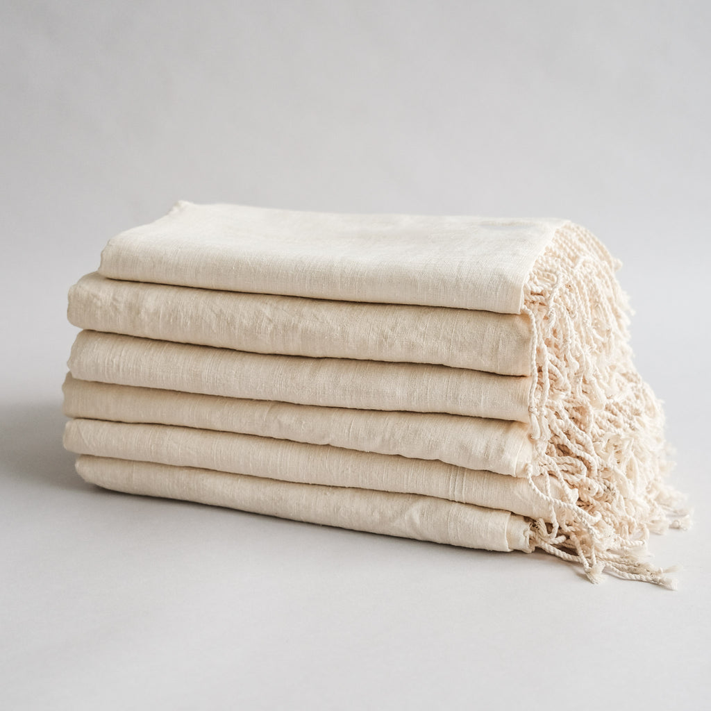 Pack of 6. These gently textured handwoven shawls are made of handspun matka silk. Beautiful as is, they also take dye very well. We love using natural dyes on these.
