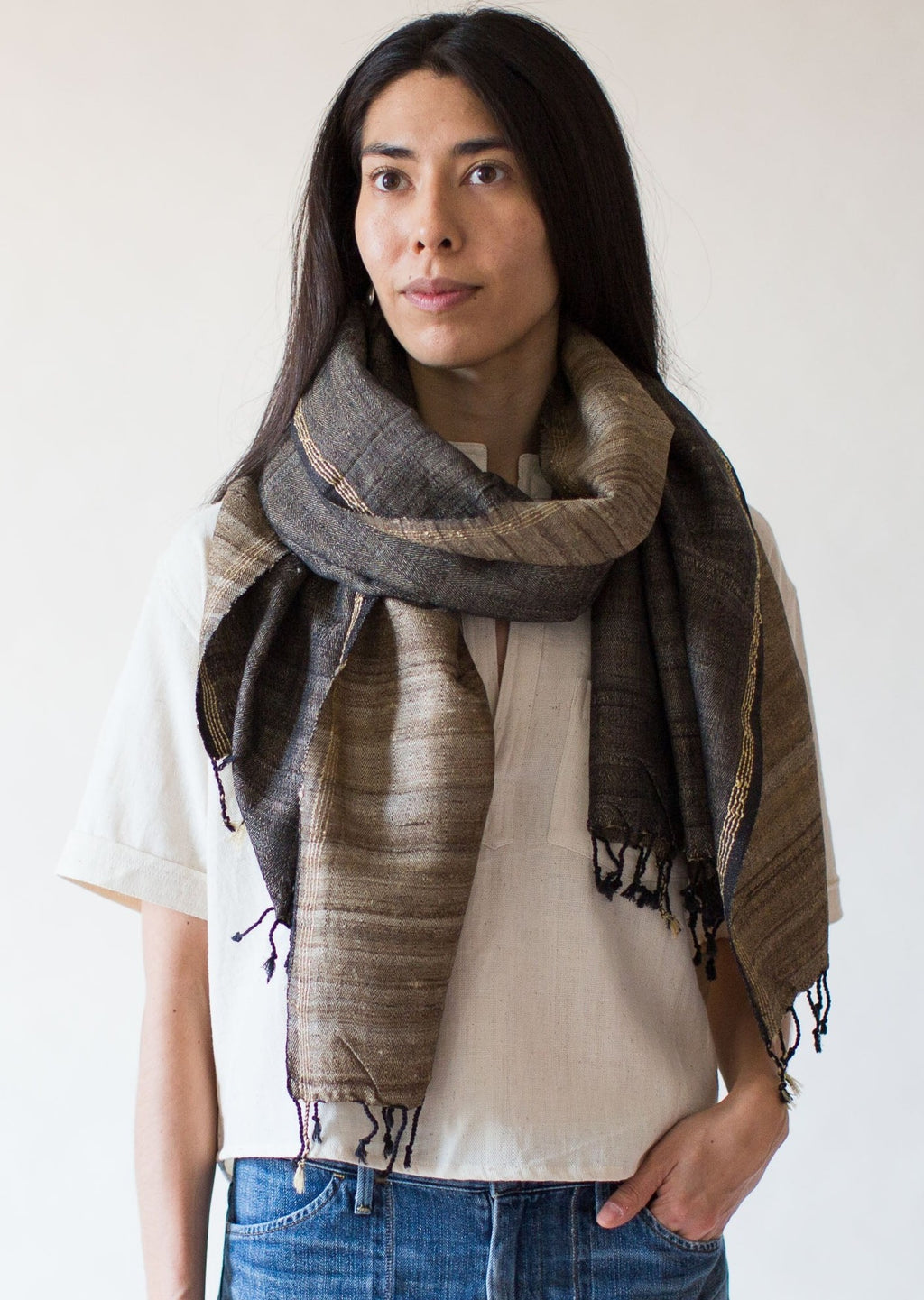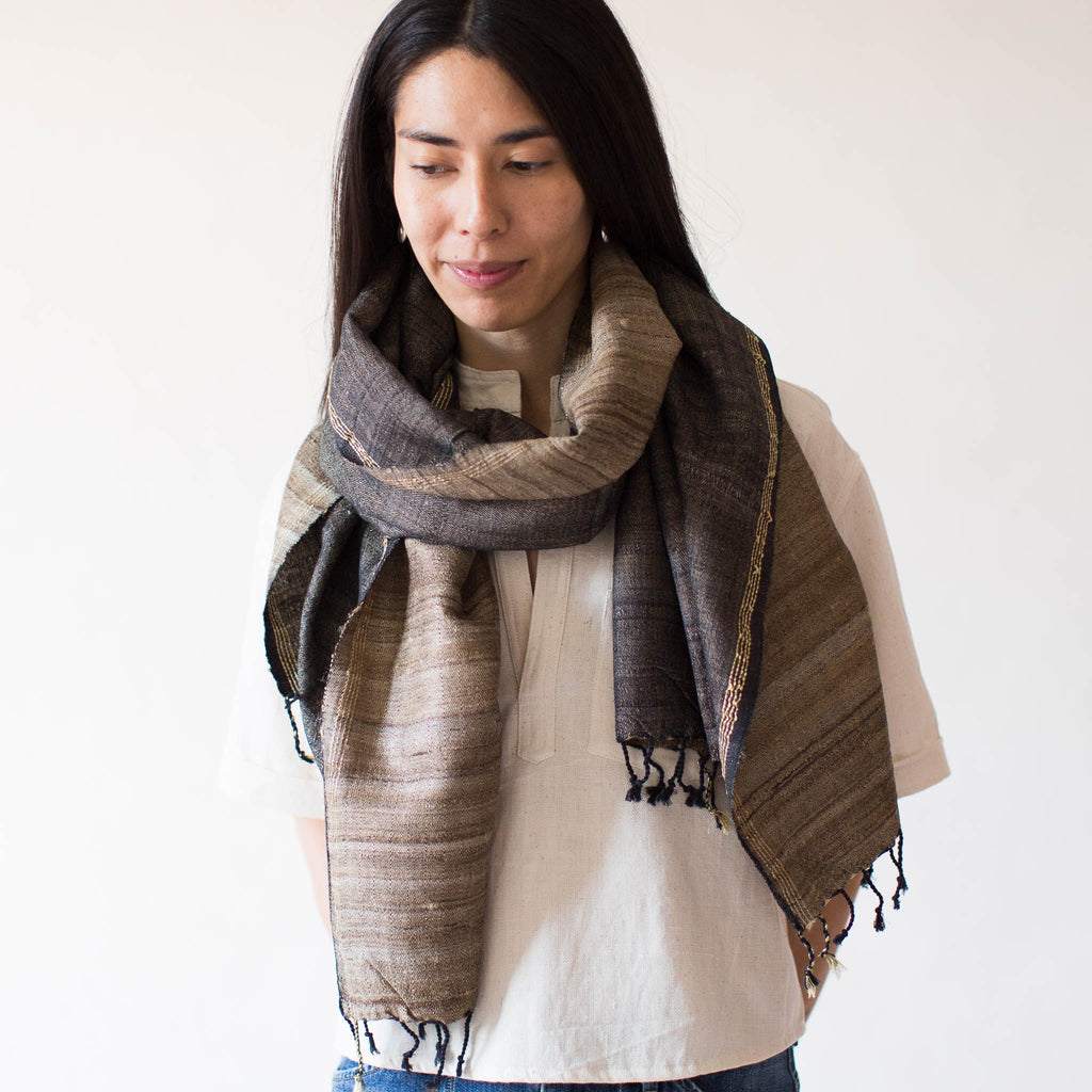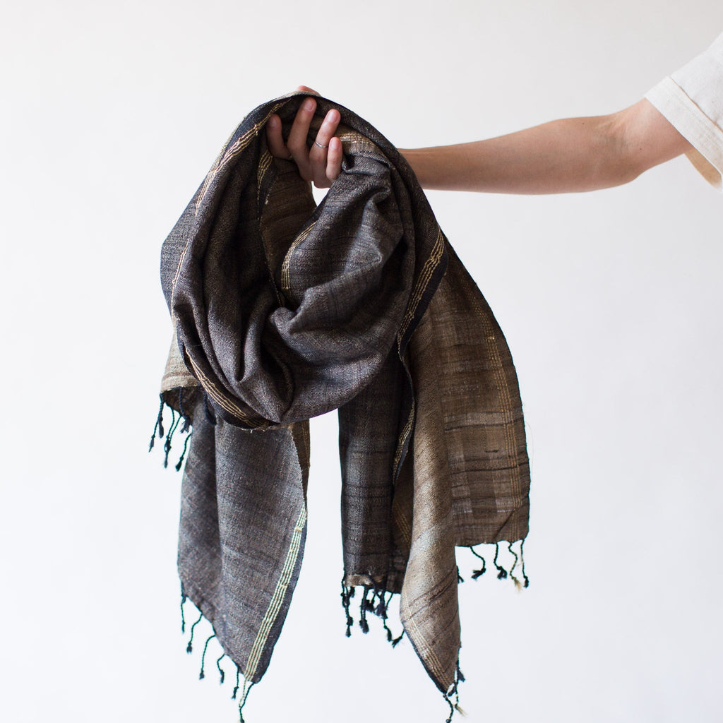 Wild Tussar Silk & Cotton Scarf - Black Warp