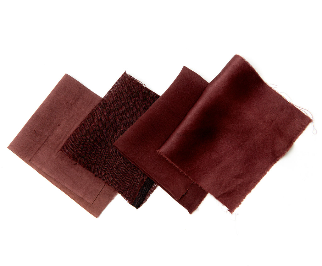 Sequoia comes from Californian Coastal Redwoods. The dyestuff occurs in minute quantities in the seed cones, and only reaches useable quantities as a byproduct of seed collection and reforestation programs. Sequoia yields rich purple browns when dyed at 15% WOF. Shades achieved are beautiful but with moderate lightfastness.