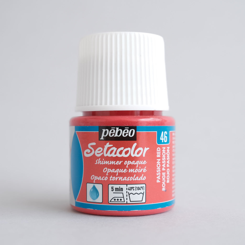 These beautiful, professional fabric paints from France can be used on most fabrics, including blends with synthetics. To render them washfast simply iron for 1-2 minutes front and back. The color range of this product is exquisite – the iridescent and opaques work well on both white and dark fabrics and the transparents are wonderful for blending, doing watercolor techniques, airbrushing etc. These fabric paints have excellent washfastness and lightfastness and leave the fabric with a very soft hand.