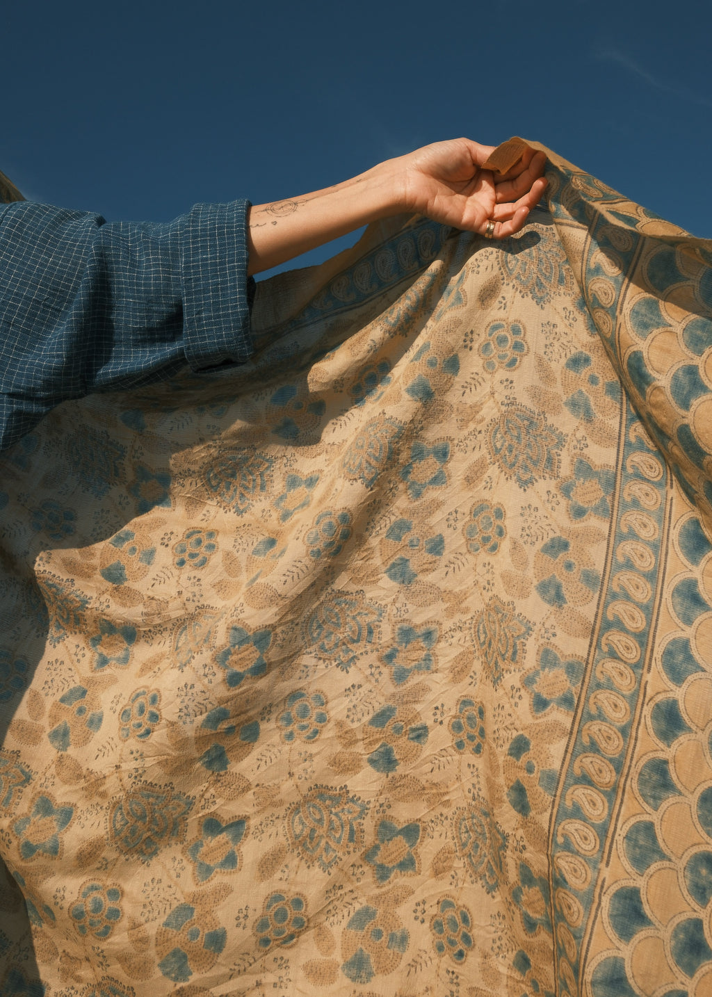 Process: Handwoven and hand block printed with natural dyes by master craftspeople in Kachchh, India.
