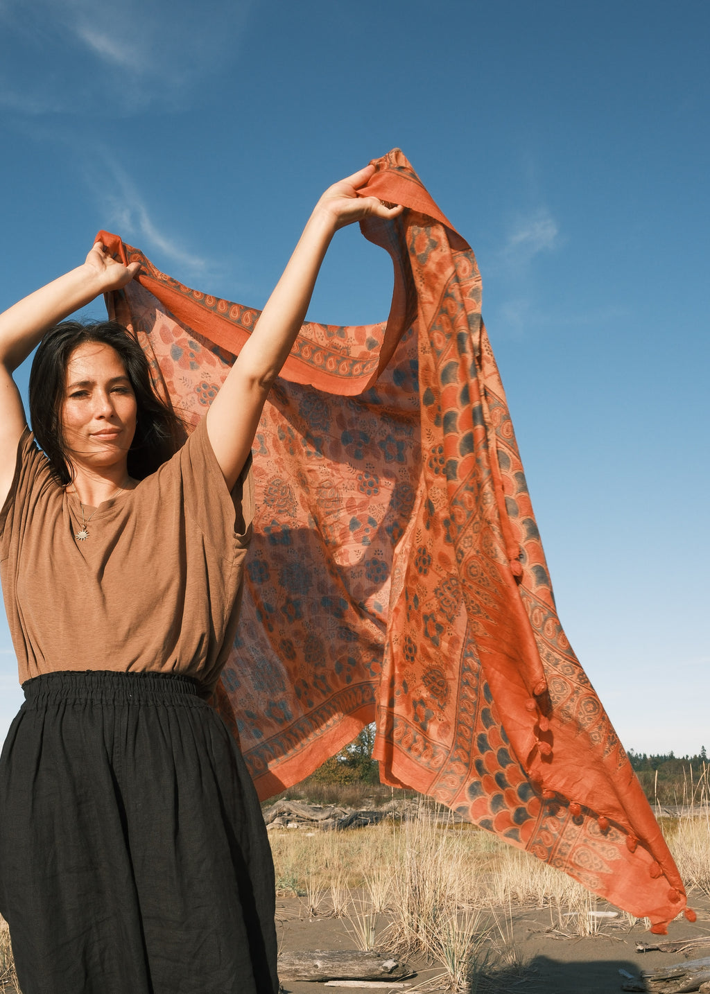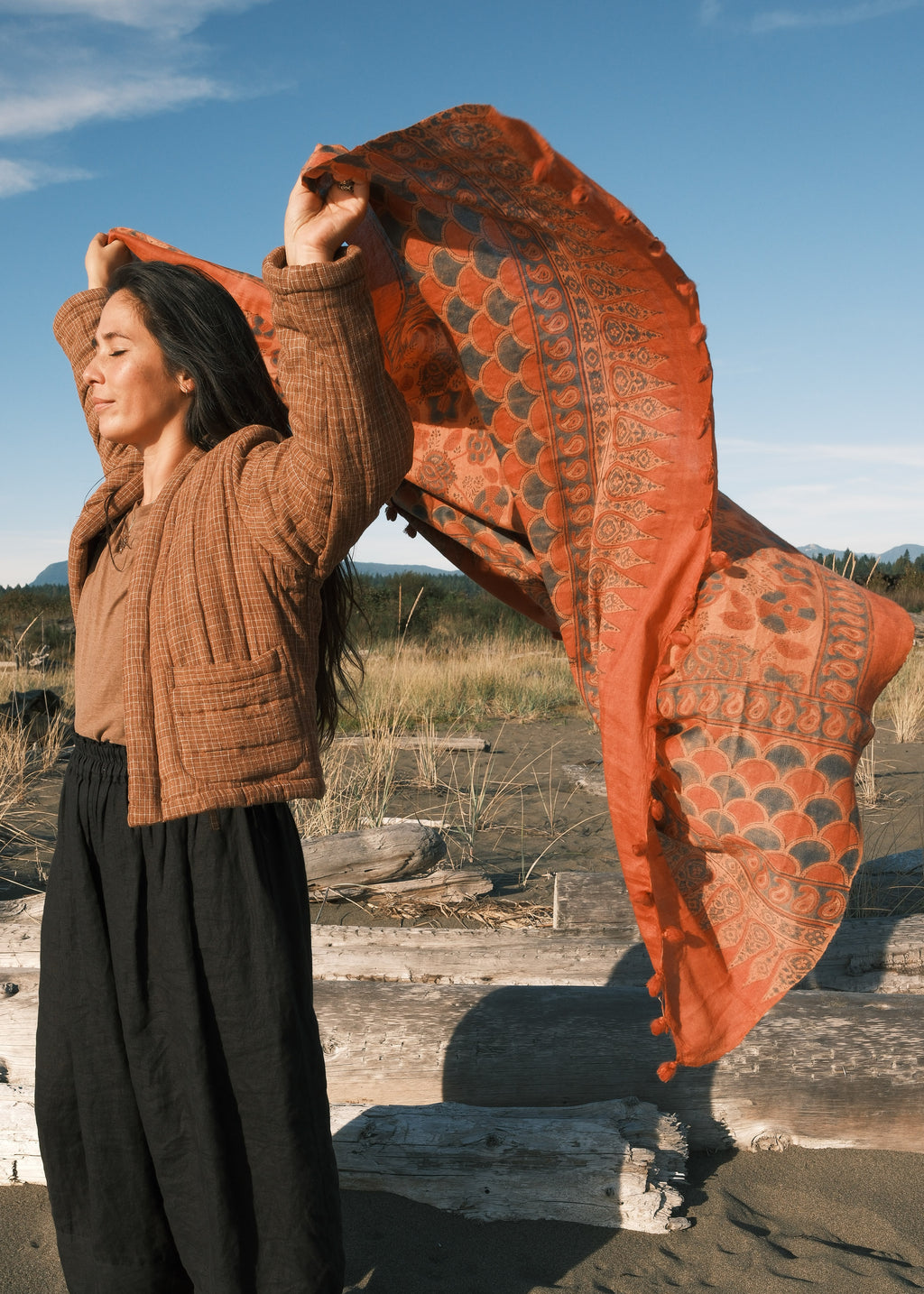 Process: Handwoven and hand block printed with natural dyes by master craftspeople in Kachchh, India.