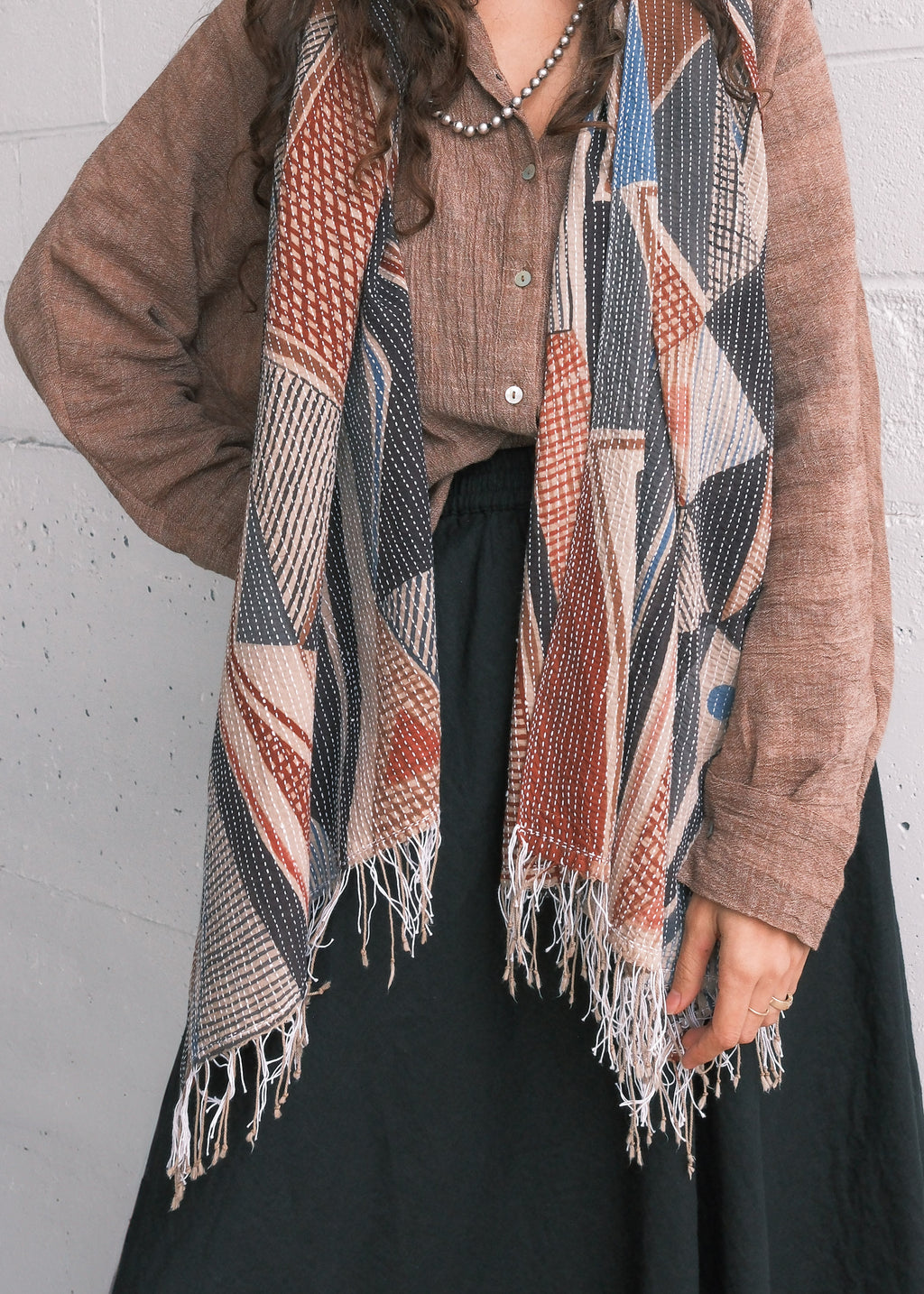 Haridra Hand Painted Cotton Shawl - Kantha Stitched - Terrain