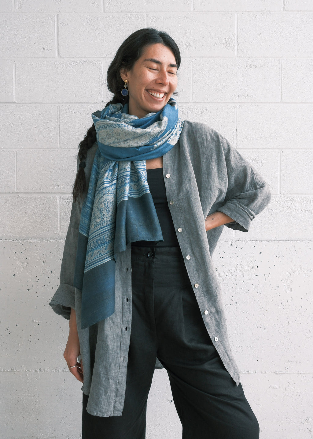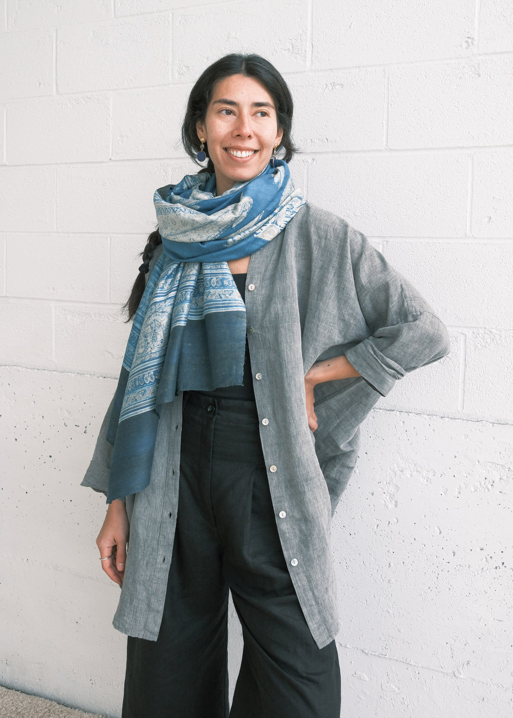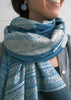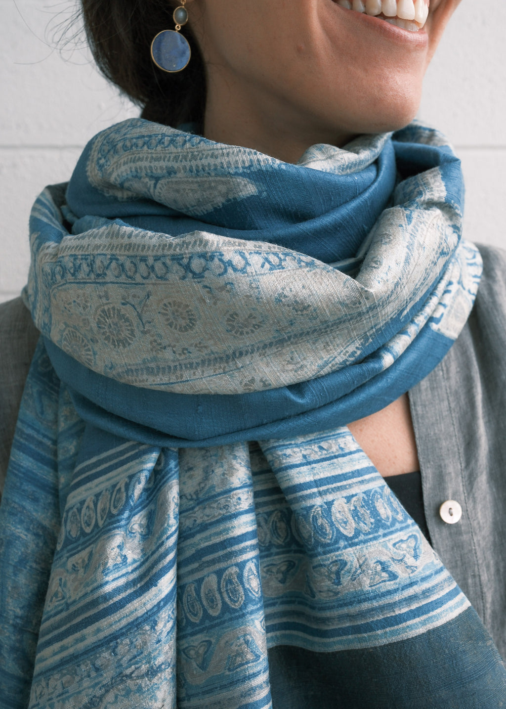 Mumbai Block Print Shawl - Handwoven Silk - Indigo Thread