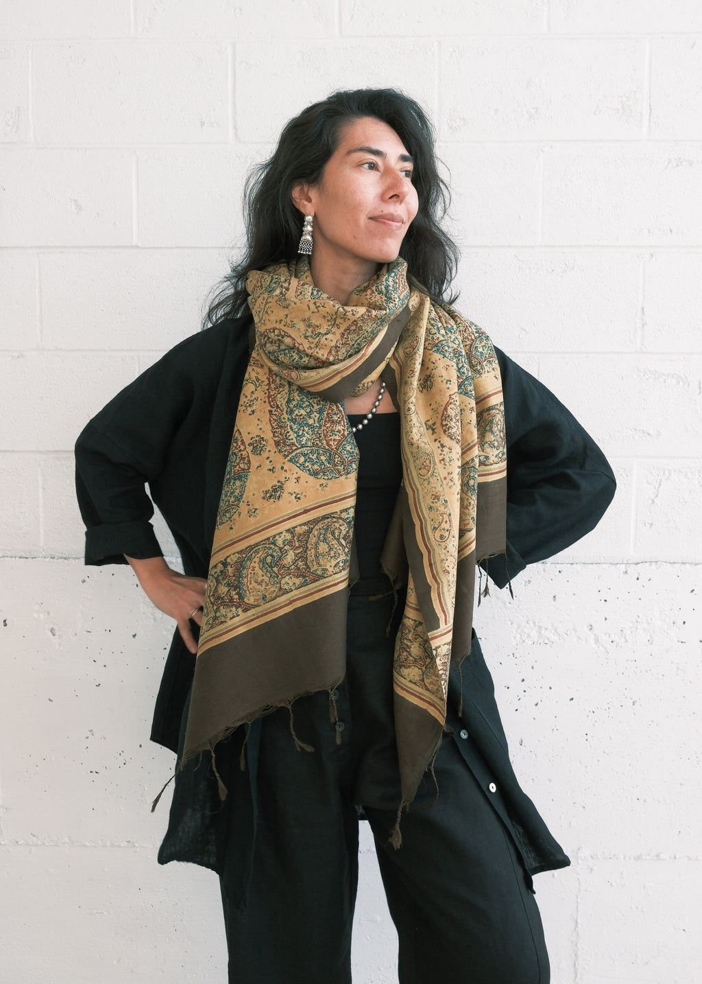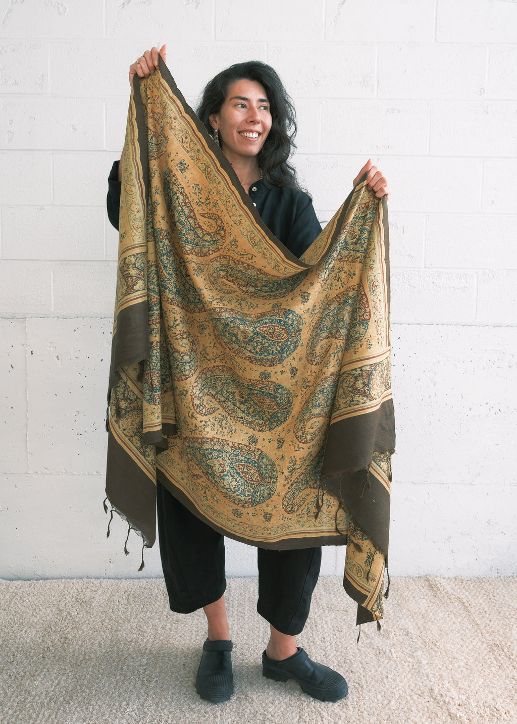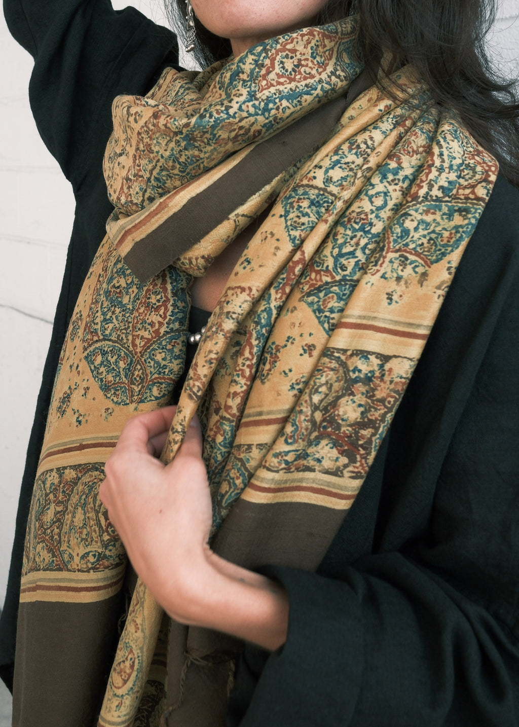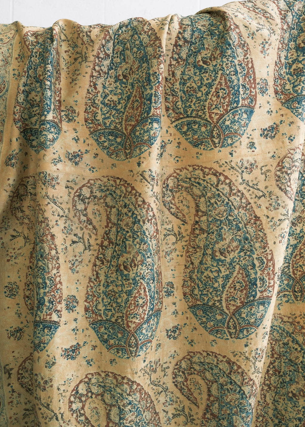 Mumbai Block Print Shawl - Handwoven Silk - Saffron Paisley
