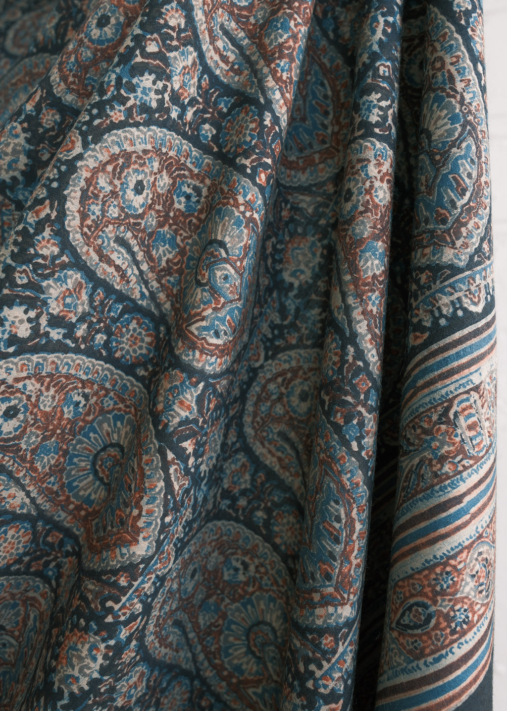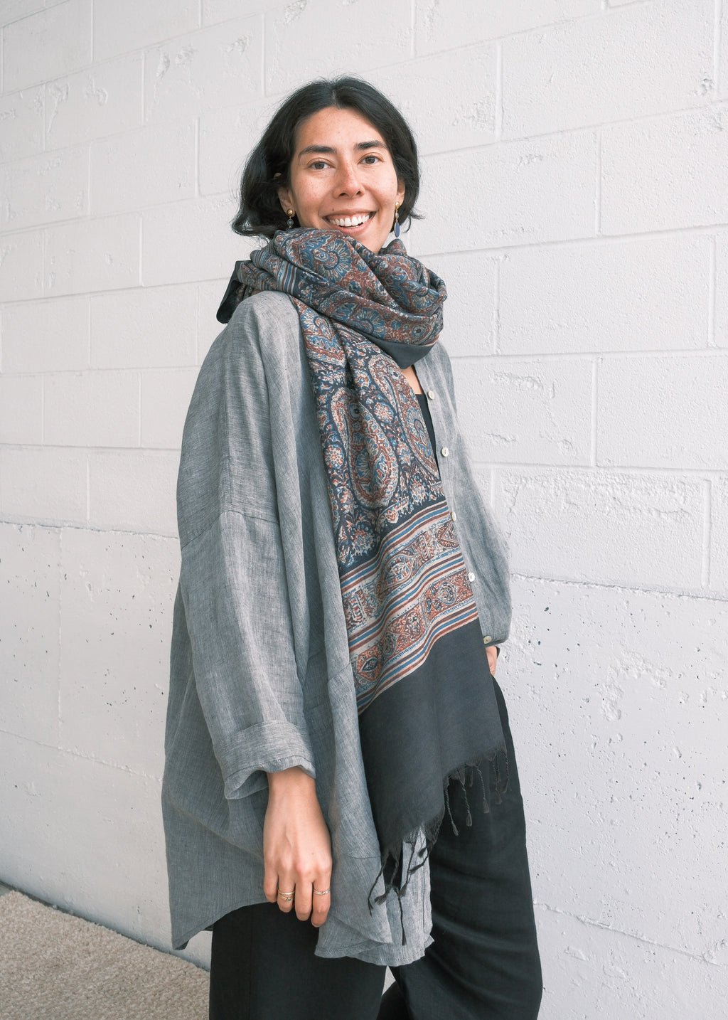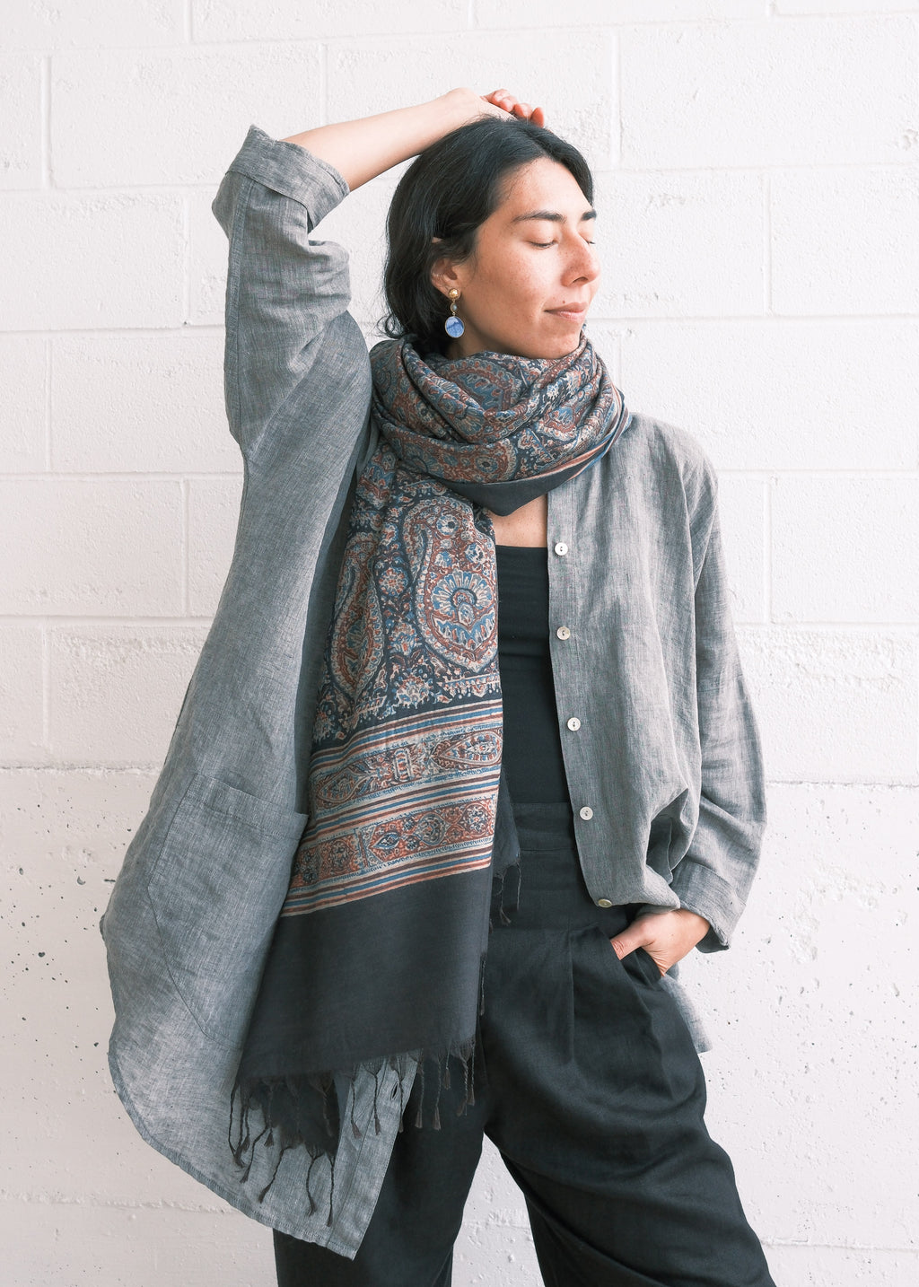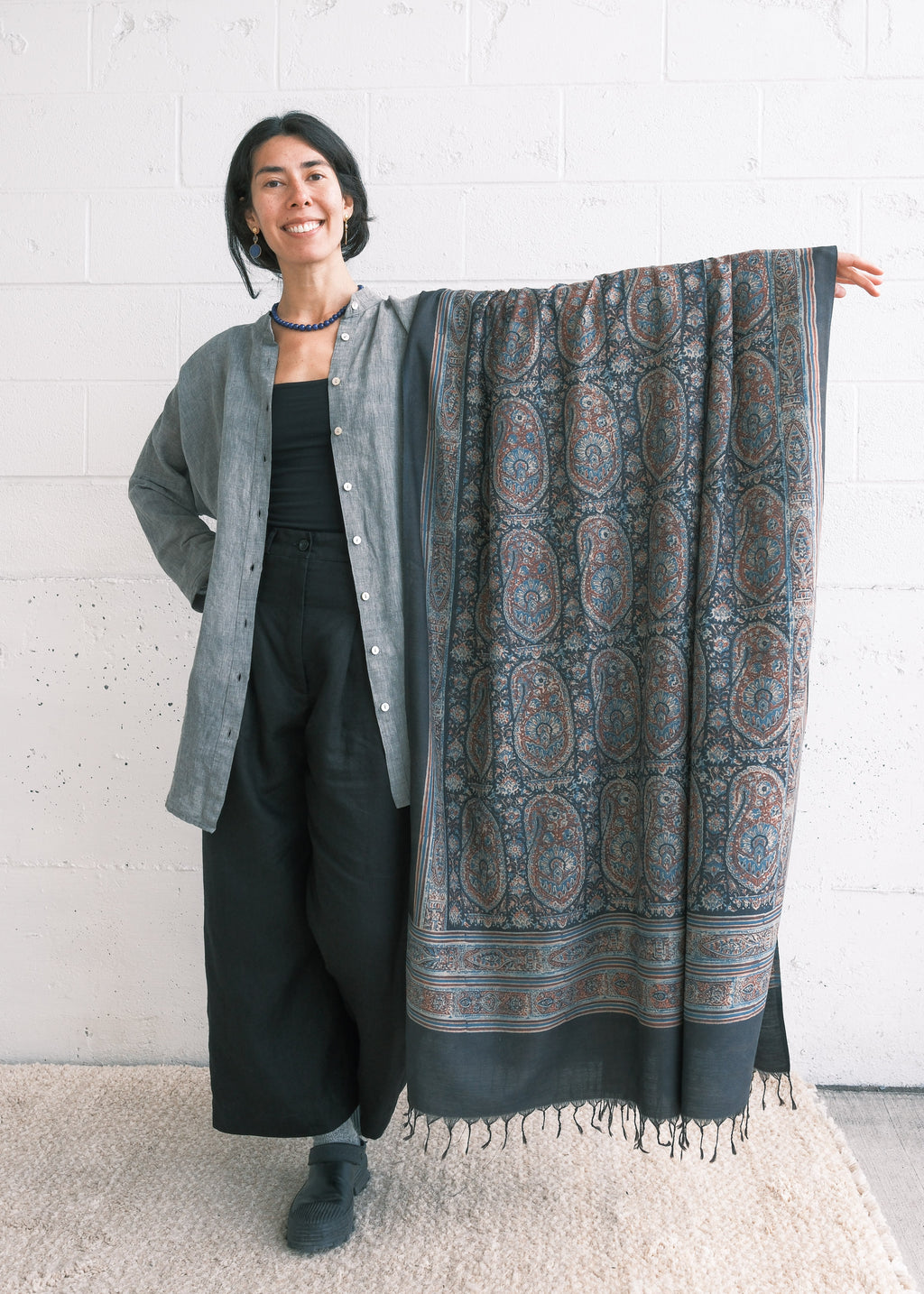 Mumbai Block Print Shawl - Handwoven Silk - Twilight