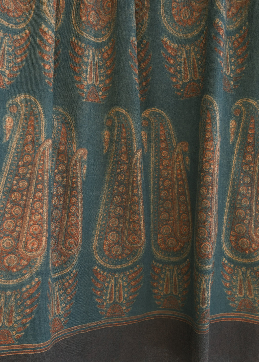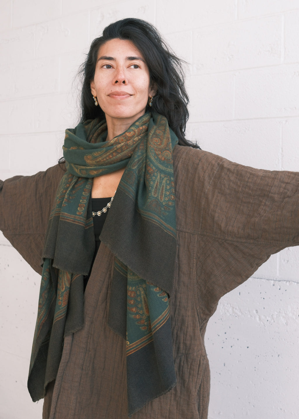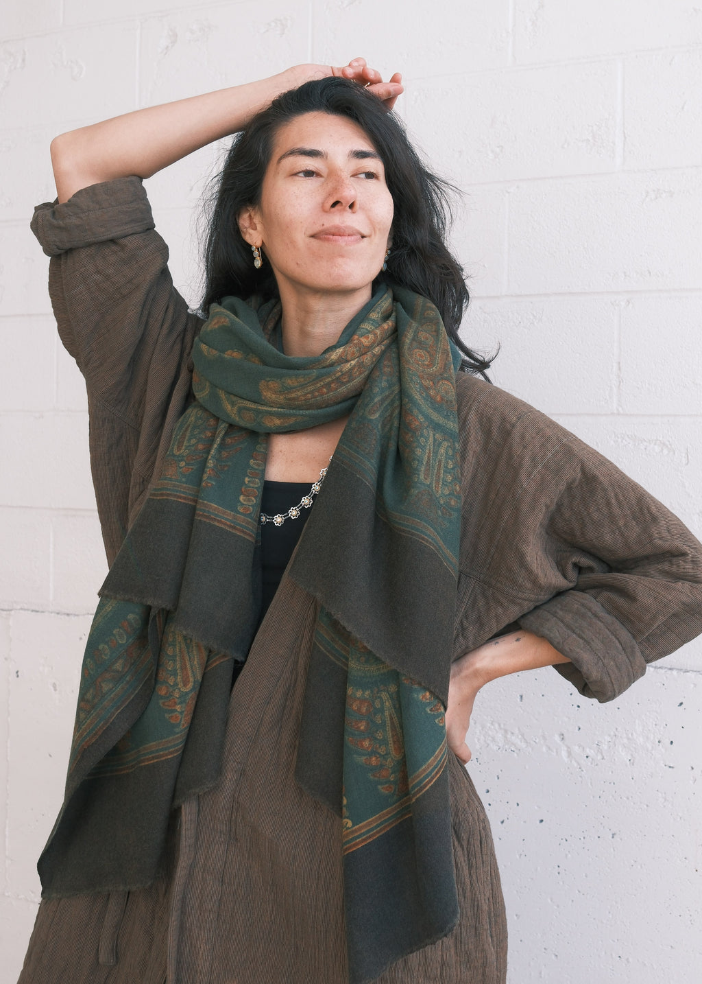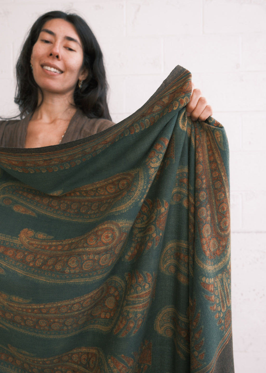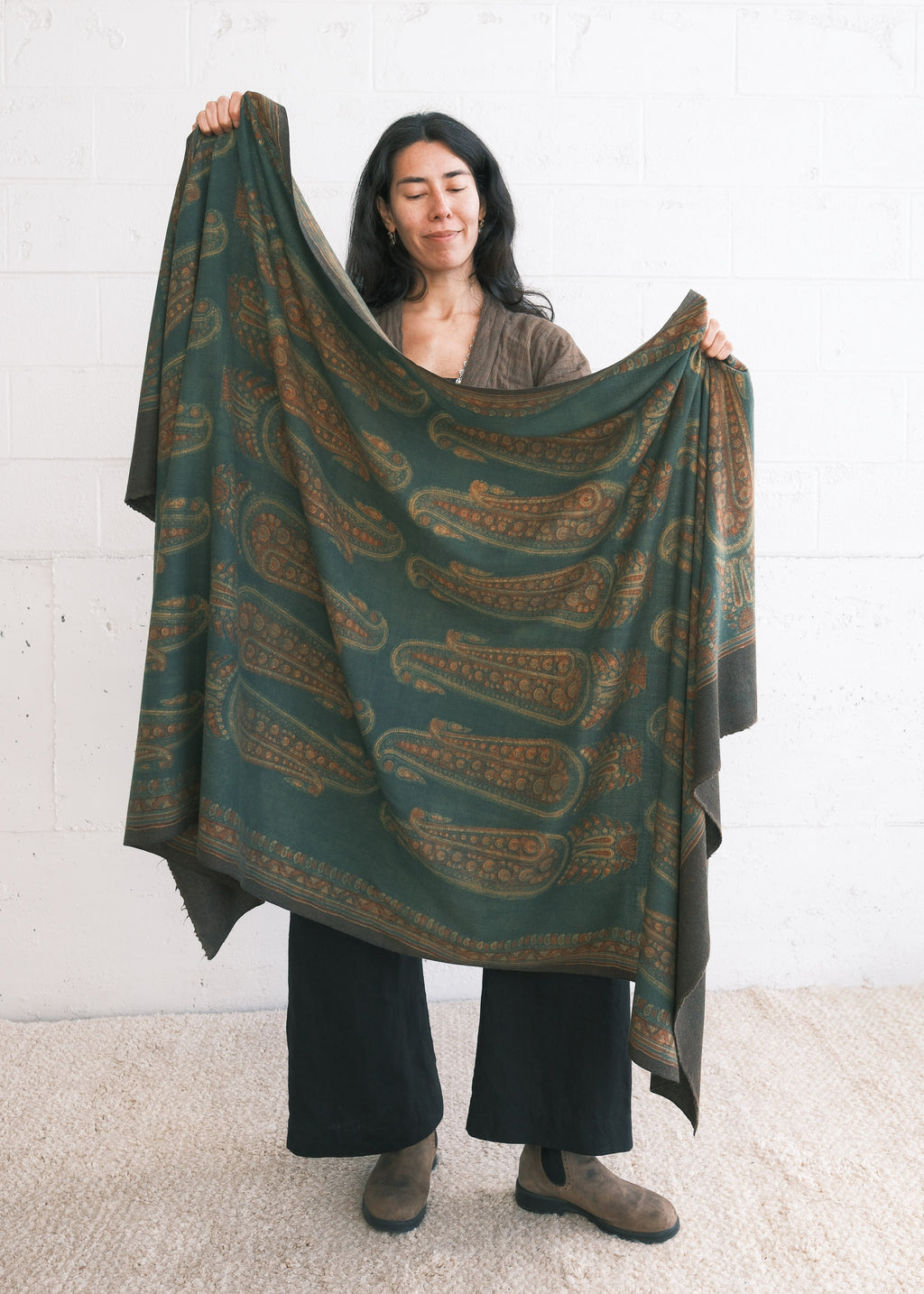 Mumbai Block Print Shawl - Handwoven Wool - Lantern Petals