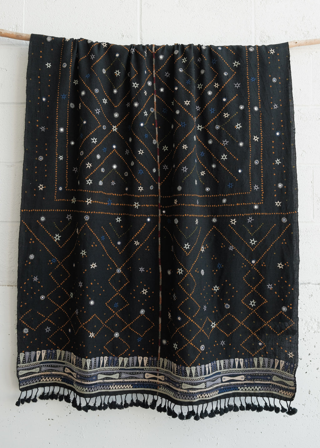 Nomadic Rabari Shawl - Wool - Indigo Stars