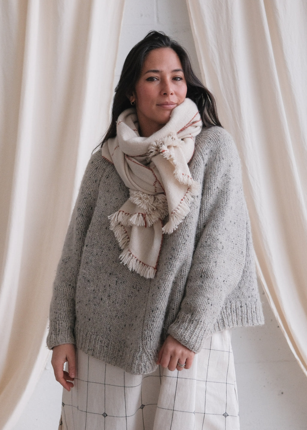 An incredibly soft shawl offering extraordinary warmth and luxury. Naturally dyed with madder this, one of a kind piece, is an elegant heirloom that you will cherish over and over again.