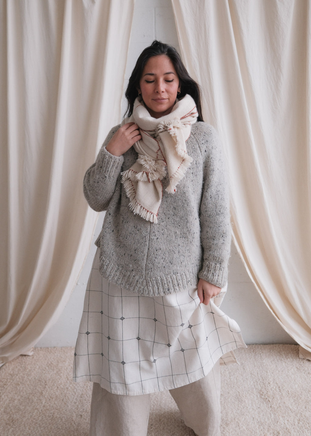 This fine fibre is handspun, handwoven and naturally dyed by the skilled artisans of Lena Ladakh, a slow textile label where each stage of production is carried by hand. Artisans use the traditional whorl and whorl-less spindles to work with these fibres. The women spin 25-35g of these fine fibres in one day. Half of these single plied spun yarns are then hand twisted into double plies for their warps. The skeins are then naturally dyed before being woven on a flying shuttle loom.