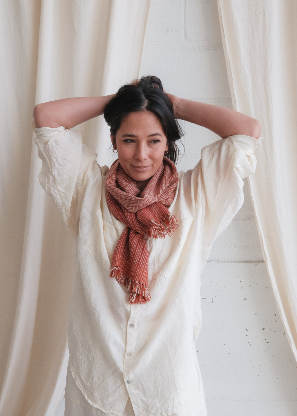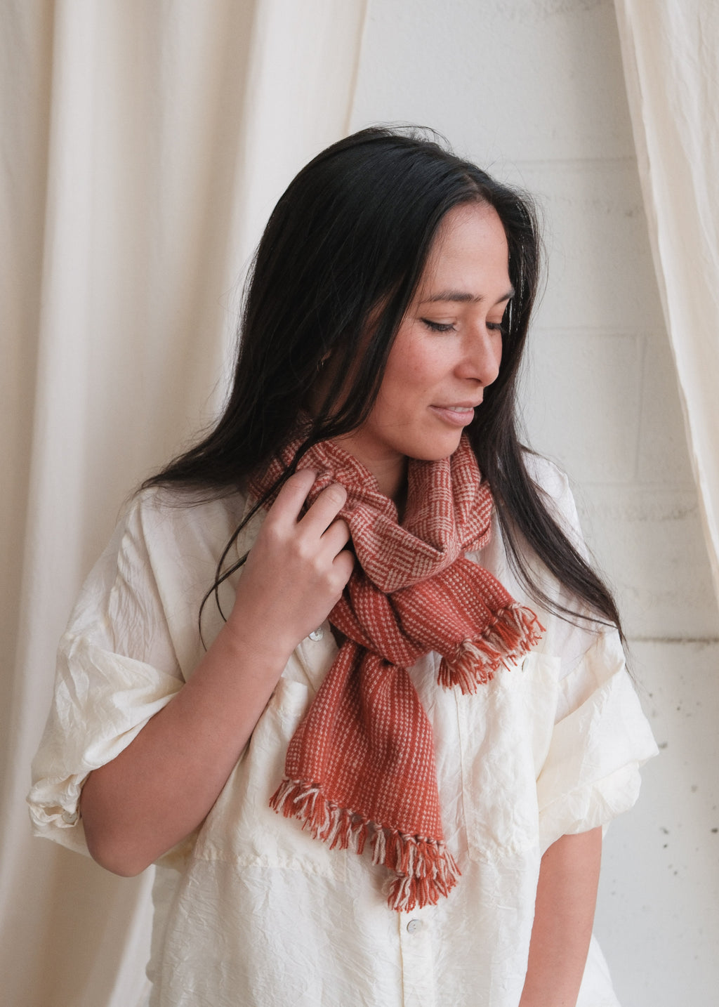 An incredibly soft shawl offering extraordinary warmth and luxury. Naturally dyed with madder this, one of a kind piece, is an elegant heirloom that you will cherish over and over again.