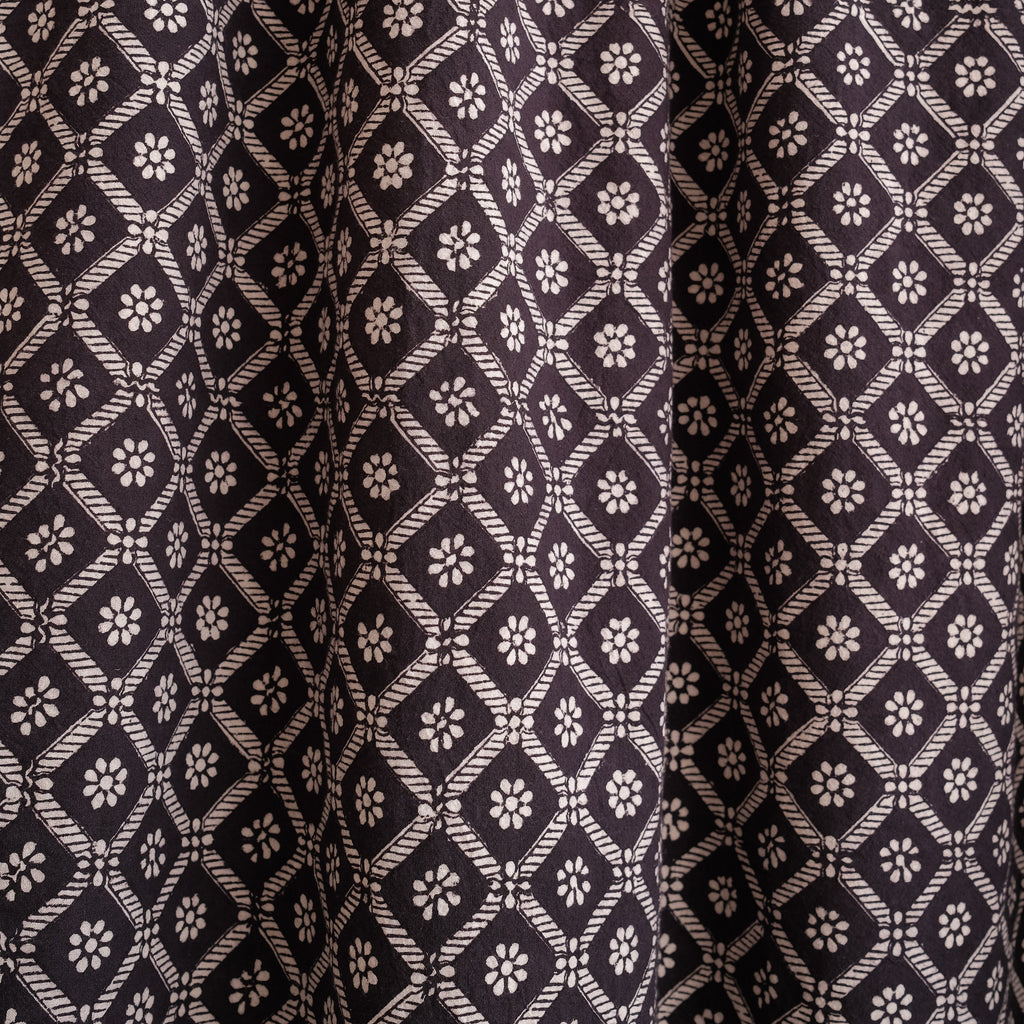 These block prints are made in the traditional way using tannin, iron water & natural dyes.  A process that has multiple distinct steps including scouring, mordanting, printing, washing and immersion dyeing. This pattern on cloth is the result of a wooden block being placed many times by an artisan’s hand - slight variations give the cloth life and are to be celebrated.