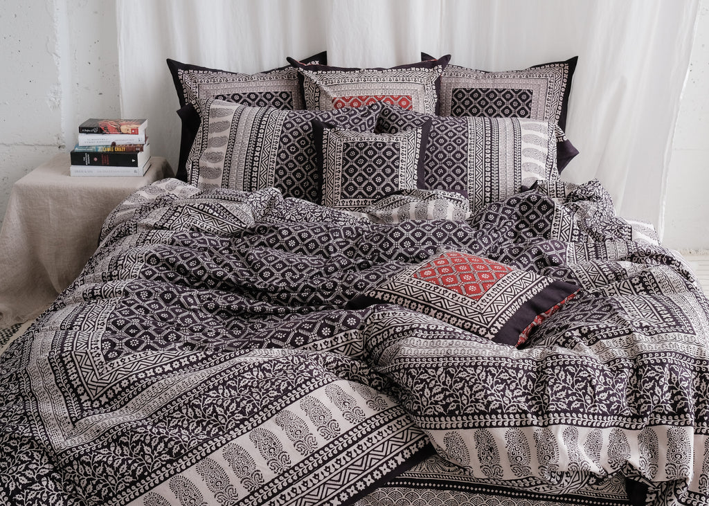 Care Instructions: Your bedding can be gently machine or hand washed with cool water. To protect the natural dyes you must use a pH neutral liquid detergent. Wash with similar colours. Immediately hang to dry in the shade or tumble dry on medium heat.