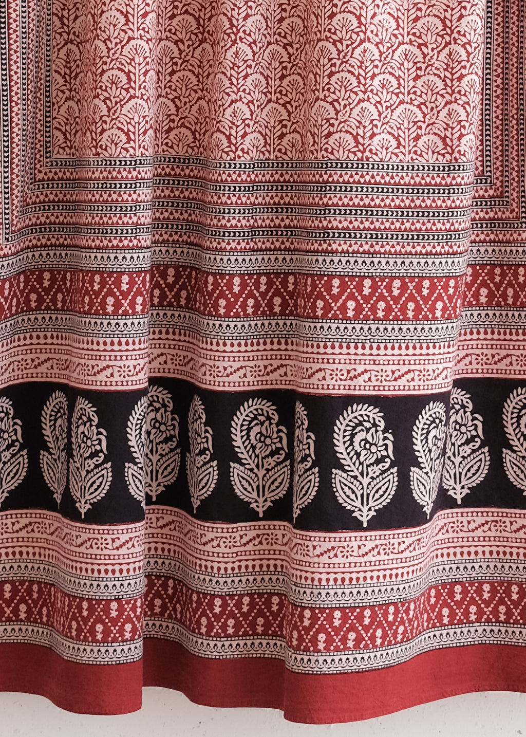 Process: Block printed by hand with natural dyes by master craftspeople in Madhya Pradesh, Central India.