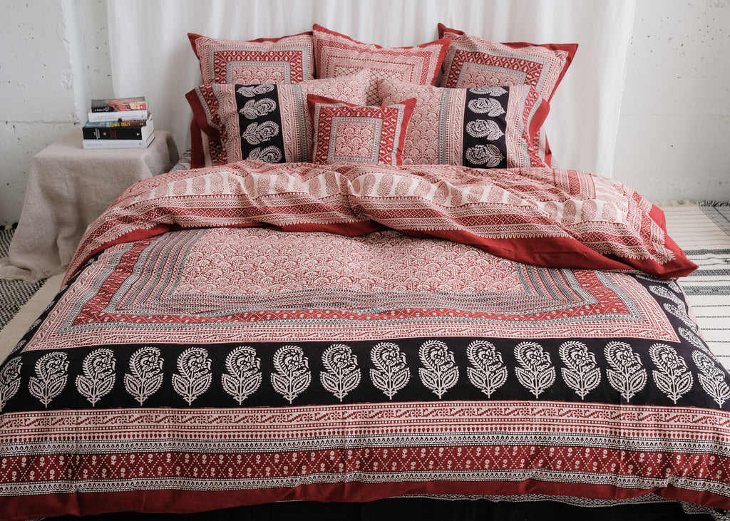 Care Instructions: Your bedding can be gently machine or hand washed with cool water. To protect the natural dyes you must use a pH neutral liquid detergent. Wash with similar colours. Immediately hang to dry in the shade or tumble dry on medium heat.