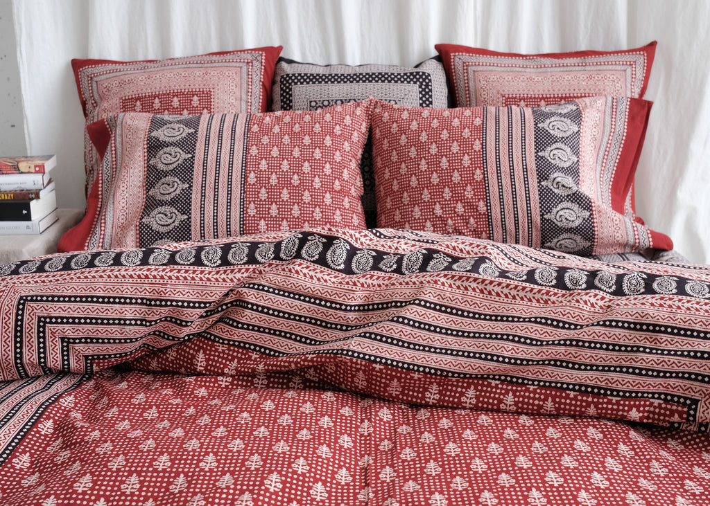 Care Instructions: Your bedding can be gently machine or hand washed with cool water. To protect the natural dyes you must use a pH neutral liquid detergent. Wash with similar colours. Immediately hang to dry in the shade or tumble dry on medium heat.