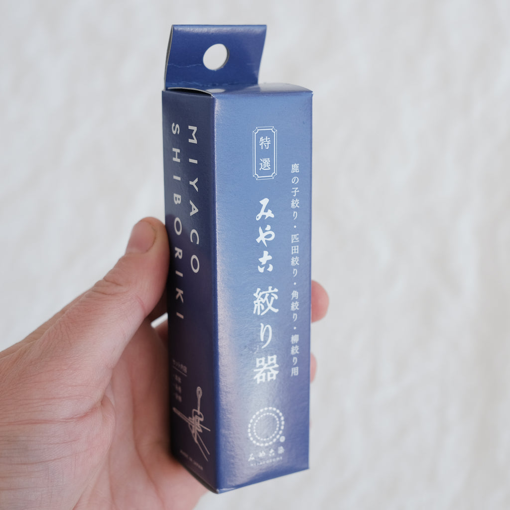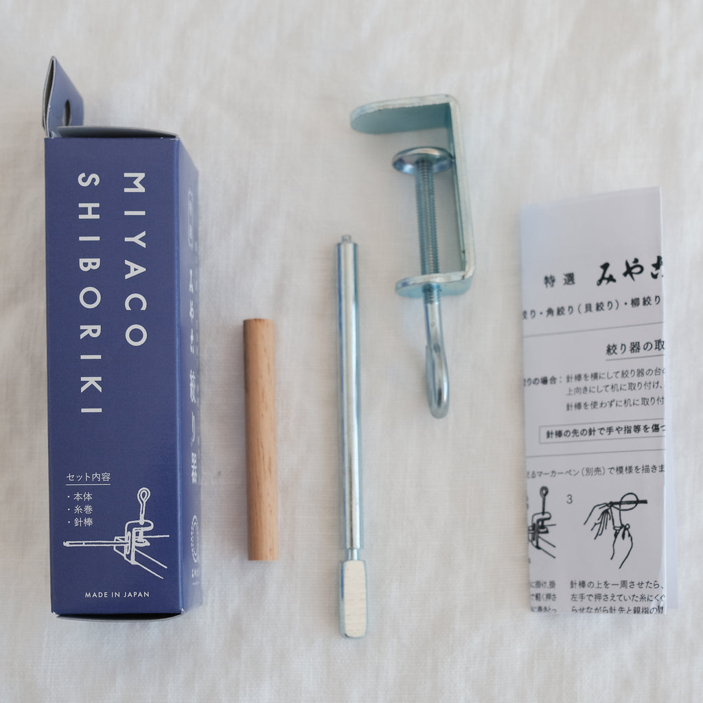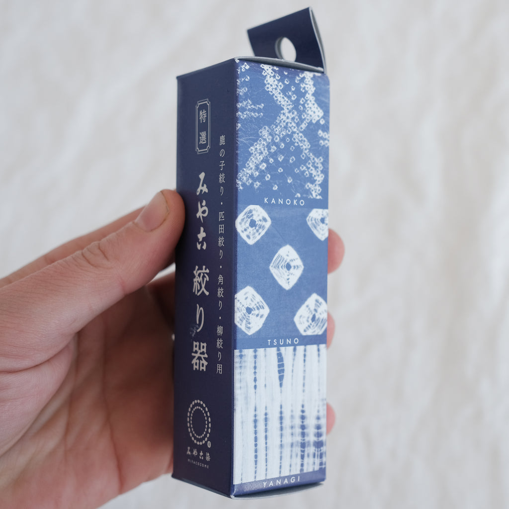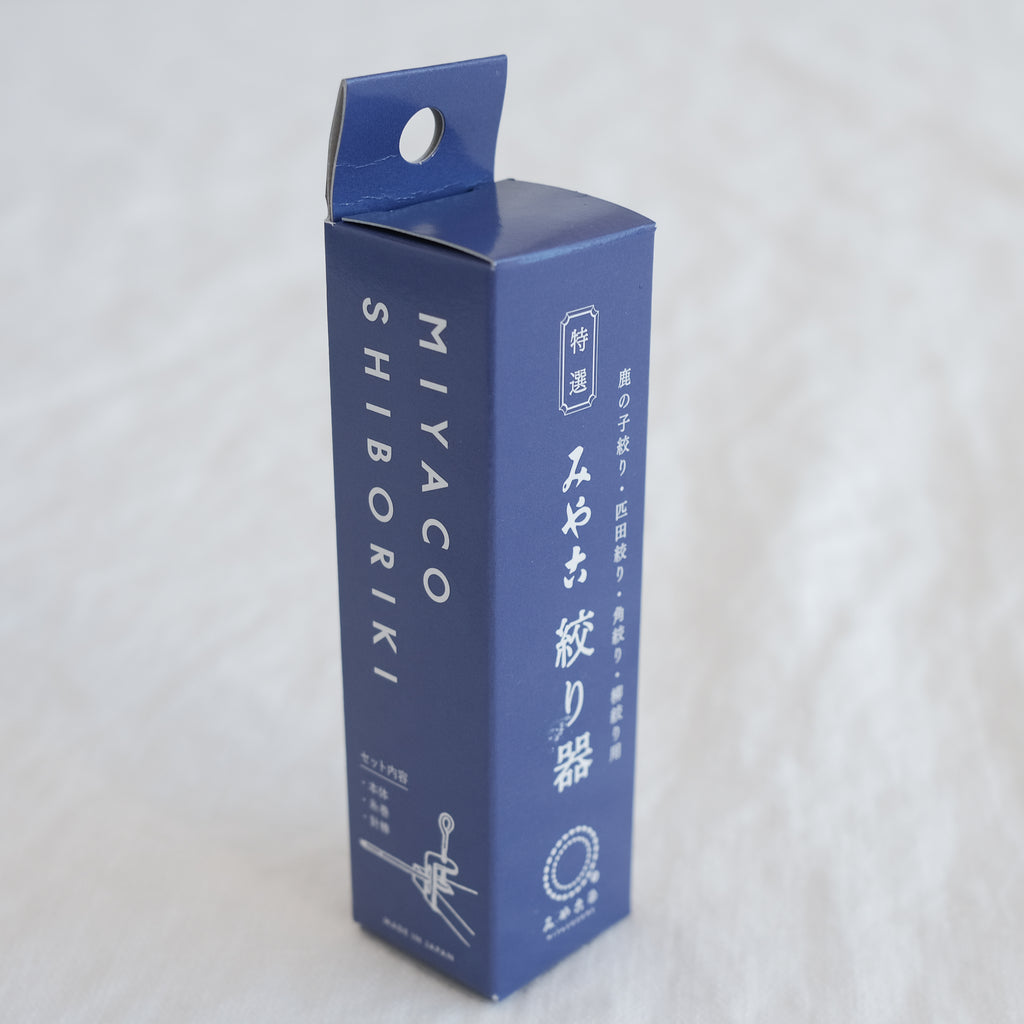 This traditional japanese shibori kit is very helpful for making the many tiny knots needed to create the circle designs found in the technique Kanoko Shibori and the larger circle designs in Hitta Shibori. It is also very useful in creating the cone of consecutive rings in the Tsuno Shibori design.