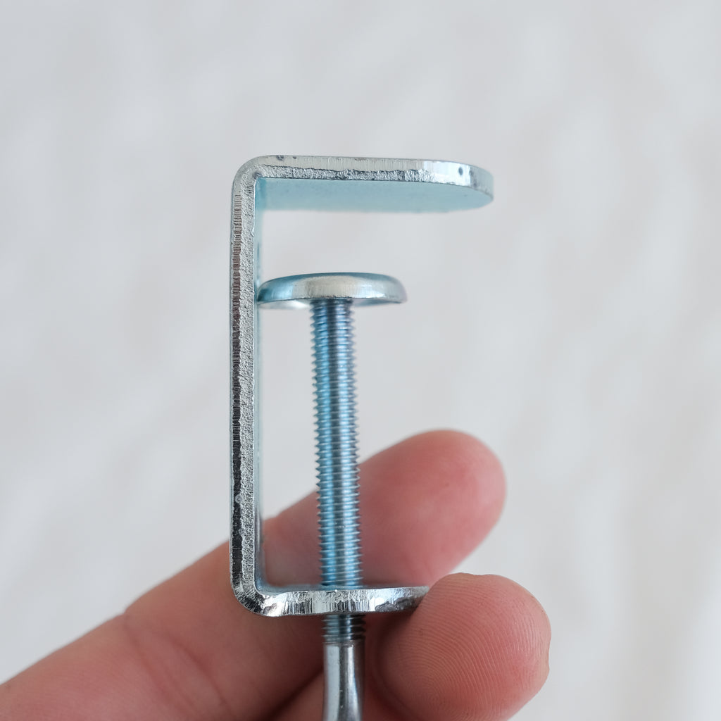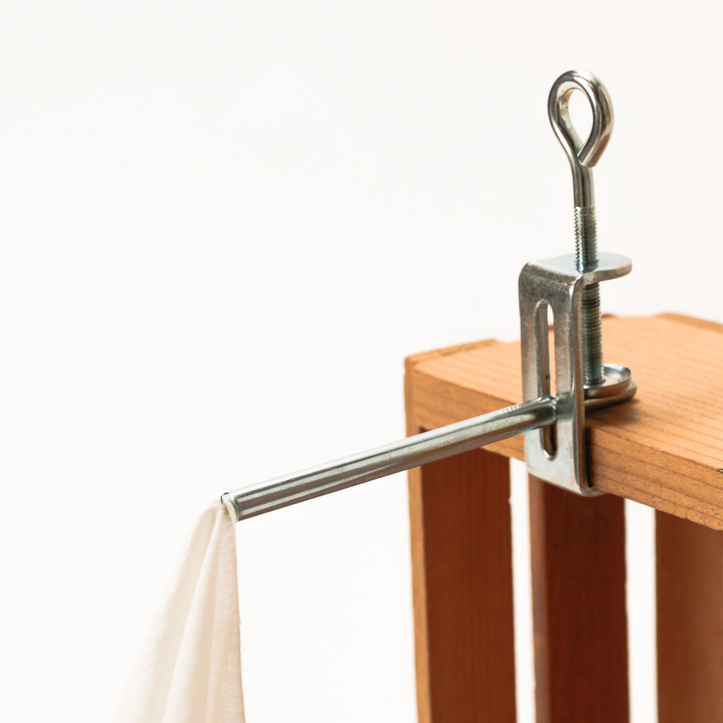 This is a quality stainless steel Japanese tool used in the art of shibori for fine and consistant design in your work. The tool helps to keep tension in the cloth as you bind.  It is made up of a clamp and a sturdy arm that is perpendicular to the clamp and has a sharp and strong pin on the end.