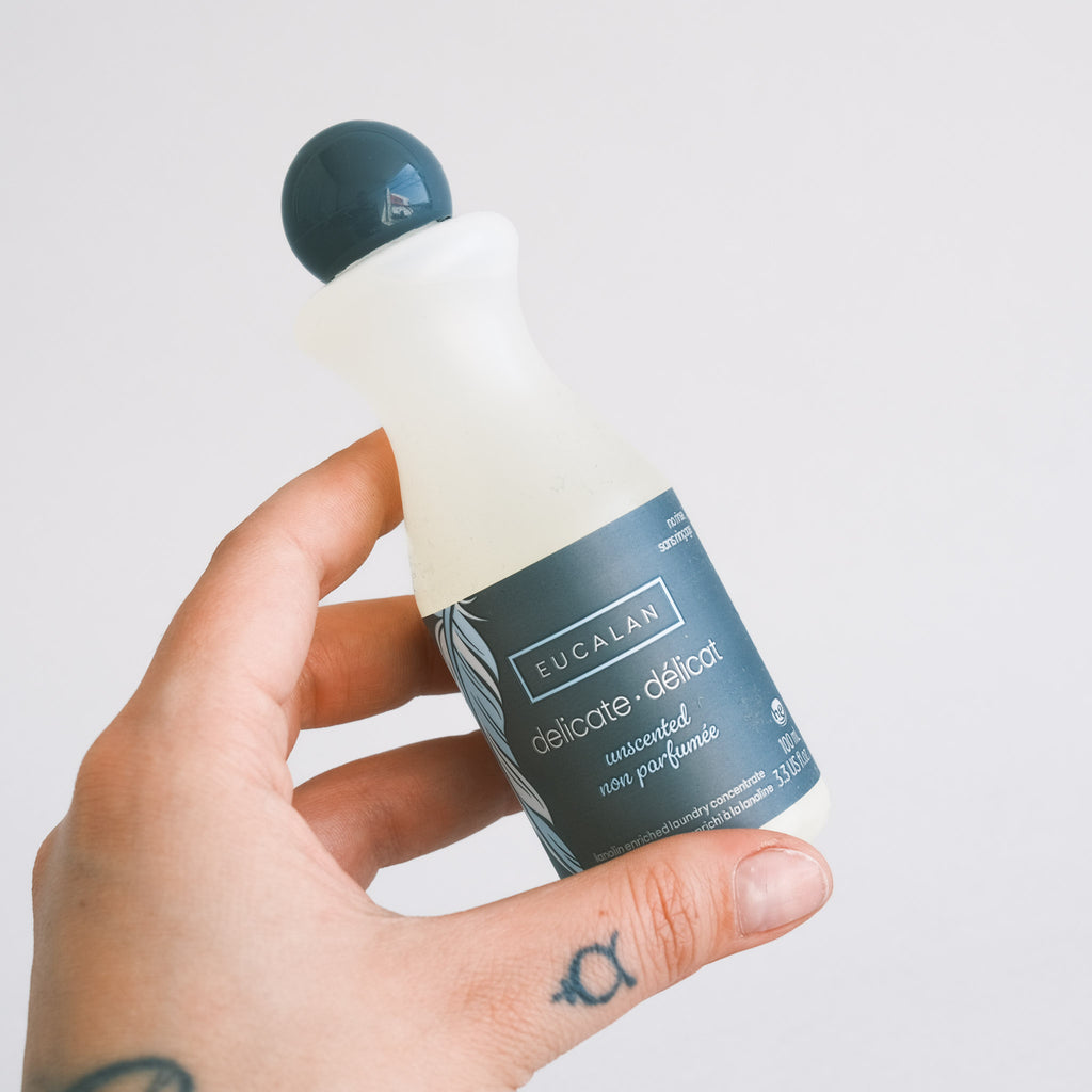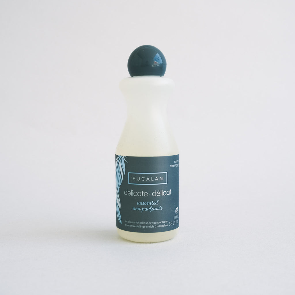 Eucalan is a No Rinse Delicate Wash that is non-toxic, biodegradable, and free of bleach, phosphates, synthetic fragrance and dye. Eucalan is pH neutral and is packaged in an easy to recycle, dye free hdpe plastic bottle. Eucalan is scented with essential oils of eucalyptus, lavender, and grapefruit, and is also available in natural (unscented). The lanolin acts as a natural conditioner, keeping fibres supple and reducing static.