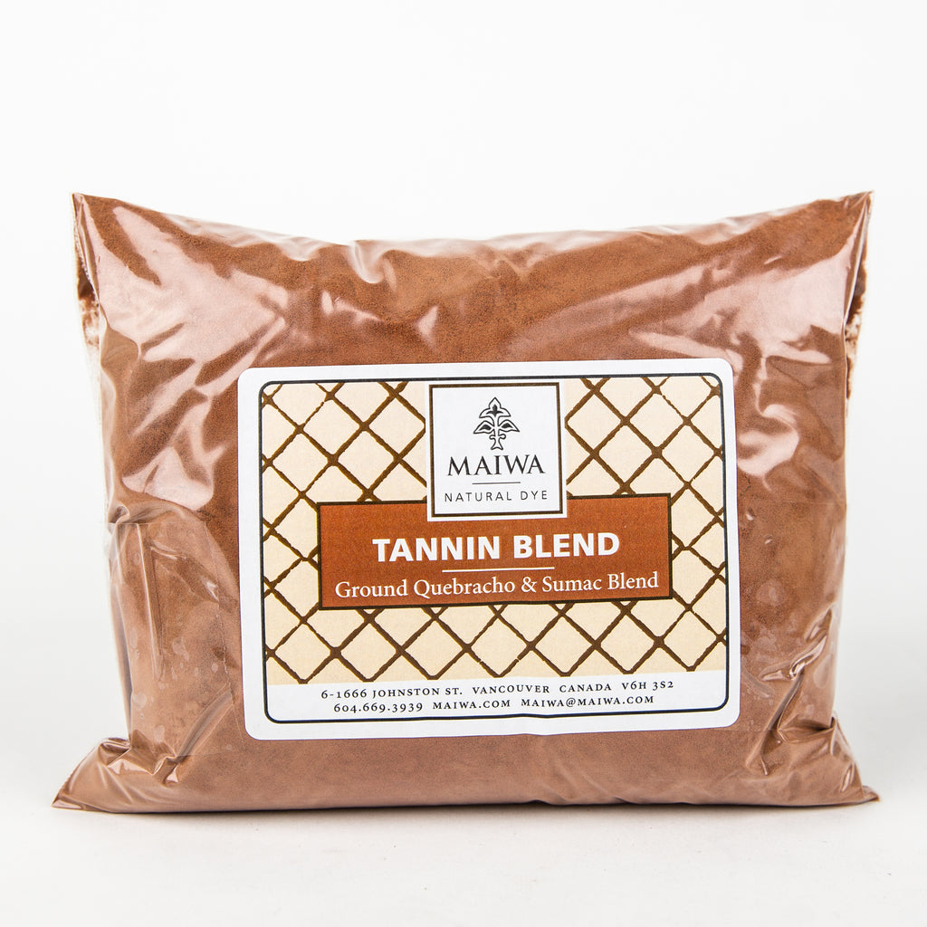This is a blend of tannins mainly composed of quebracho and sumac. It will leave a very light red-brown colour on cloth. Use at 10-20% WOF as part of the mordanting procedure.
