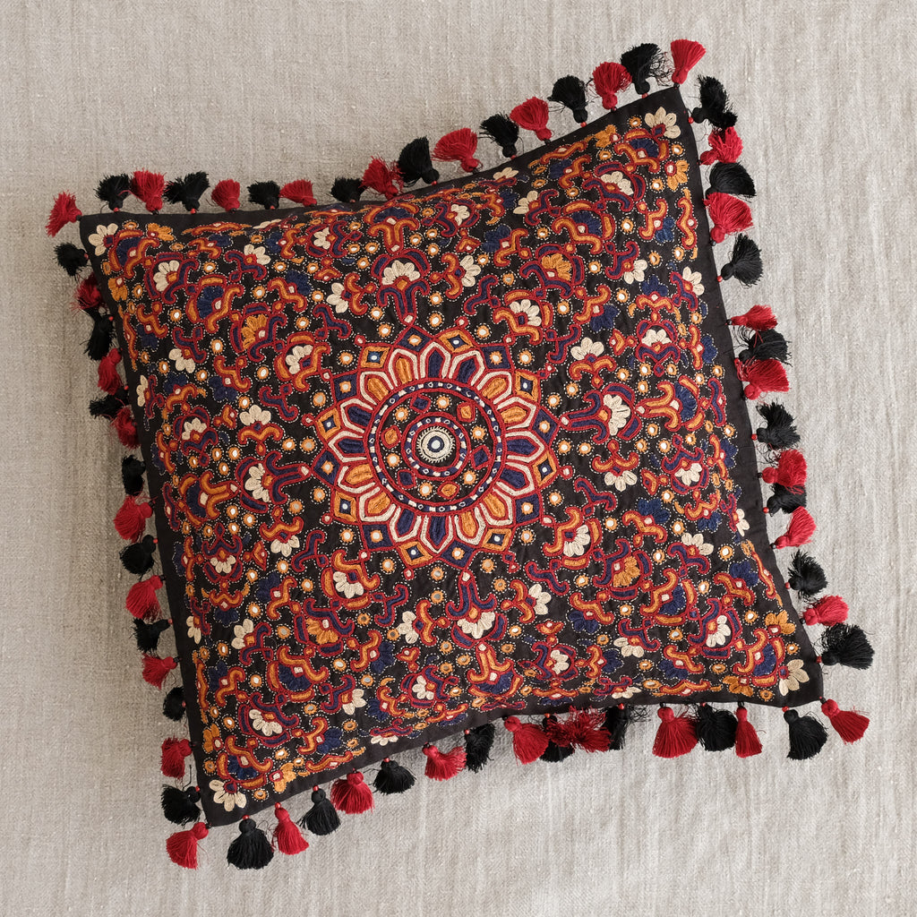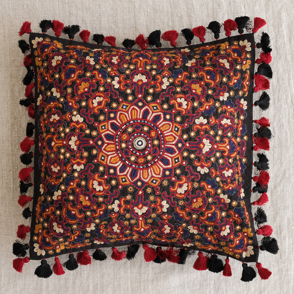 Kachchh Embroidery - 16" Cushion Cover - Meghwar - Blooms in the Night