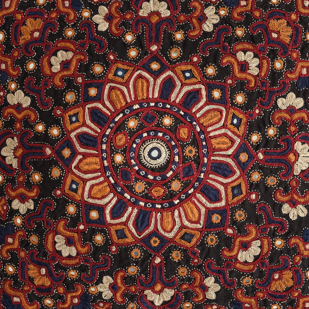 The women of the Meghwar community are highly skilled embroiderers. Just as we learn to write each letter before making a word, they learn each stitch to make the pattern. Following their mother's lead, they learn the designs of their community slowly as they grow. The Meghwar motifs are tightly stitched, bright, bold and colourful.